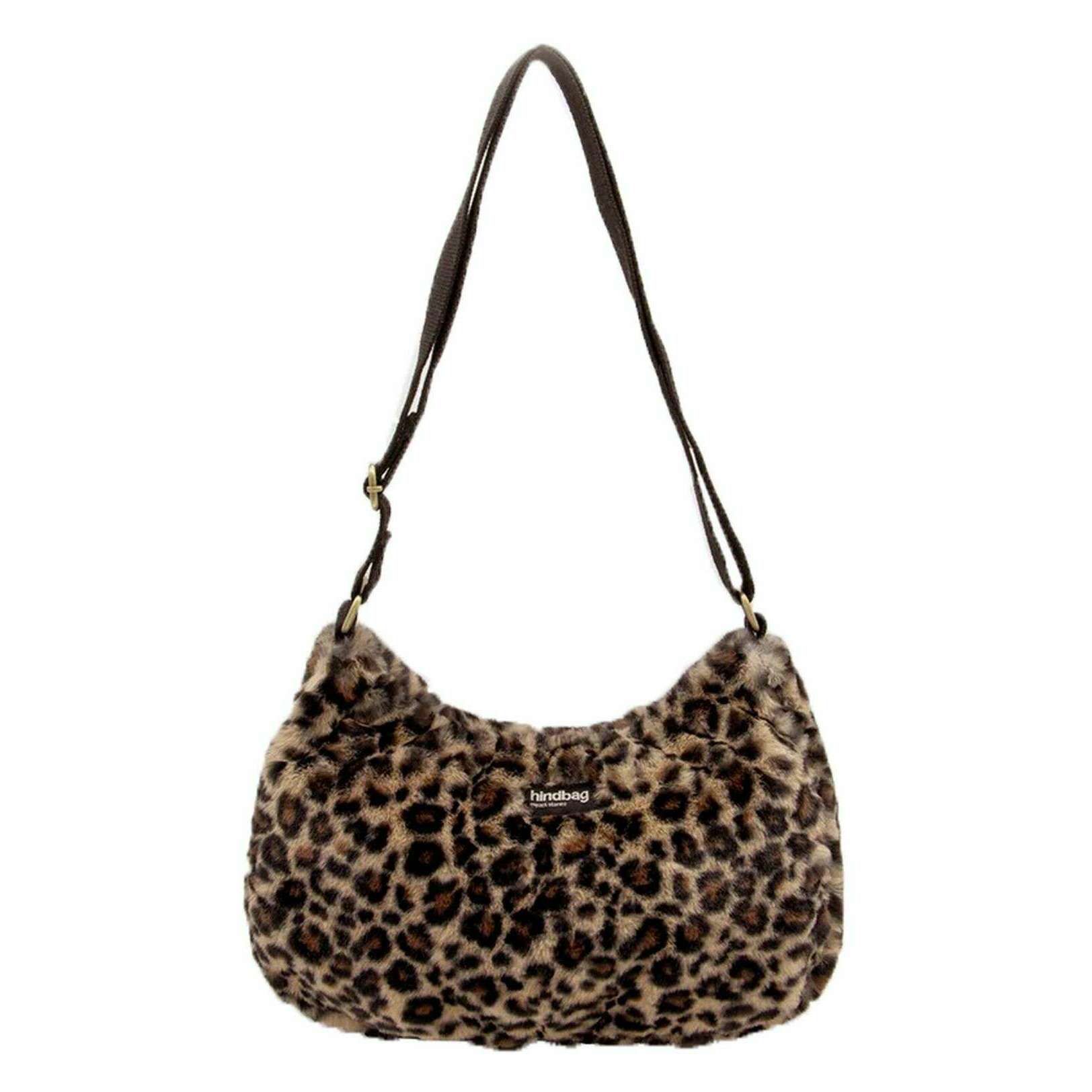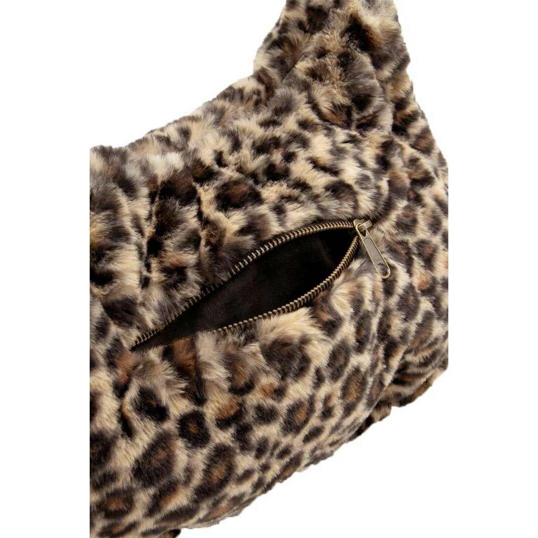 Hindbag Rosa Large Shoulder Bag - Faux Fur Leopard Brown