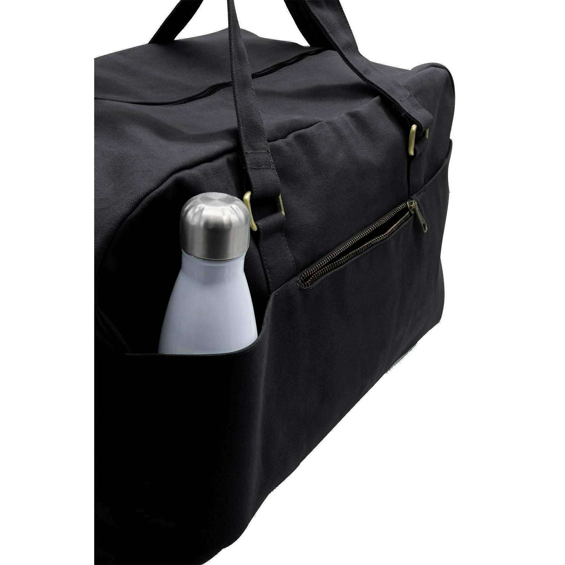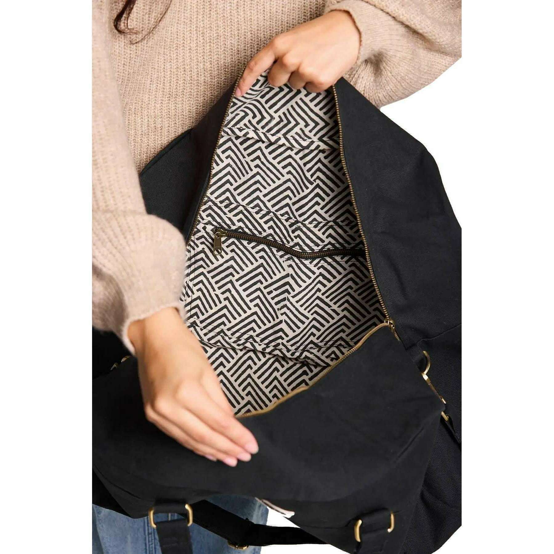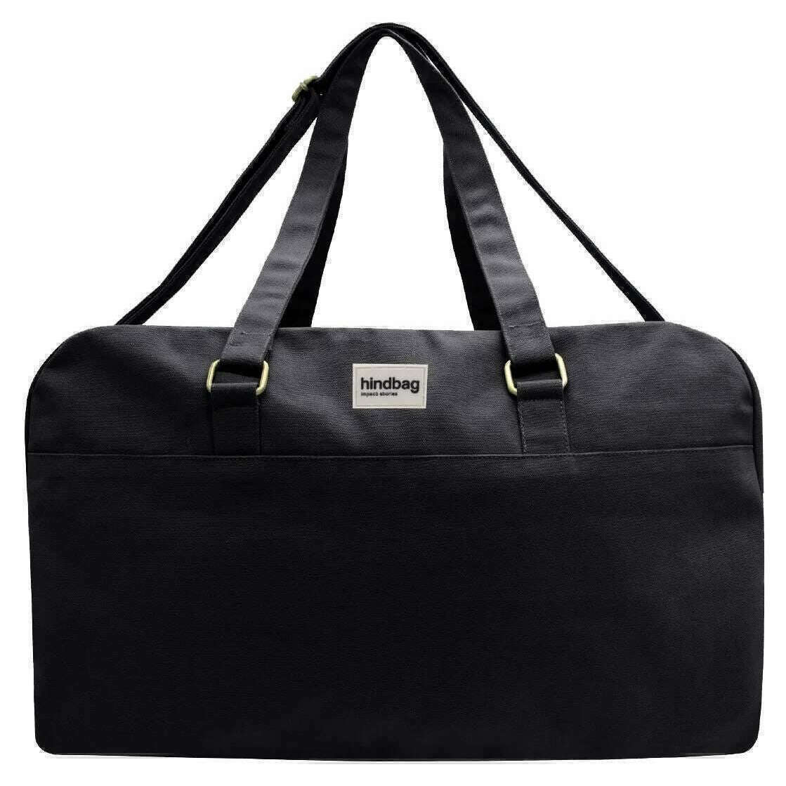 This unisex yves large travel bag by the brand Hindbag is made from 100% organic cotton and is showcased in black. It measures 33cm(height) x 54cm(width) x 24cm(depth). All the bags come complete with hindbag packaging. The Hindbag Yves Large Travel Bag - Black is a spacious and eco-friendly option for travellers. Crafted from thick, GOTS-certified organic cotton, this bag features multiple pockets for organization, a secure zipper closure, and a printed inner lining that adds a touch of elegance. With its handles and large adjustable shoulder strap, this bag can be easily carried by hand or on the shoulder.