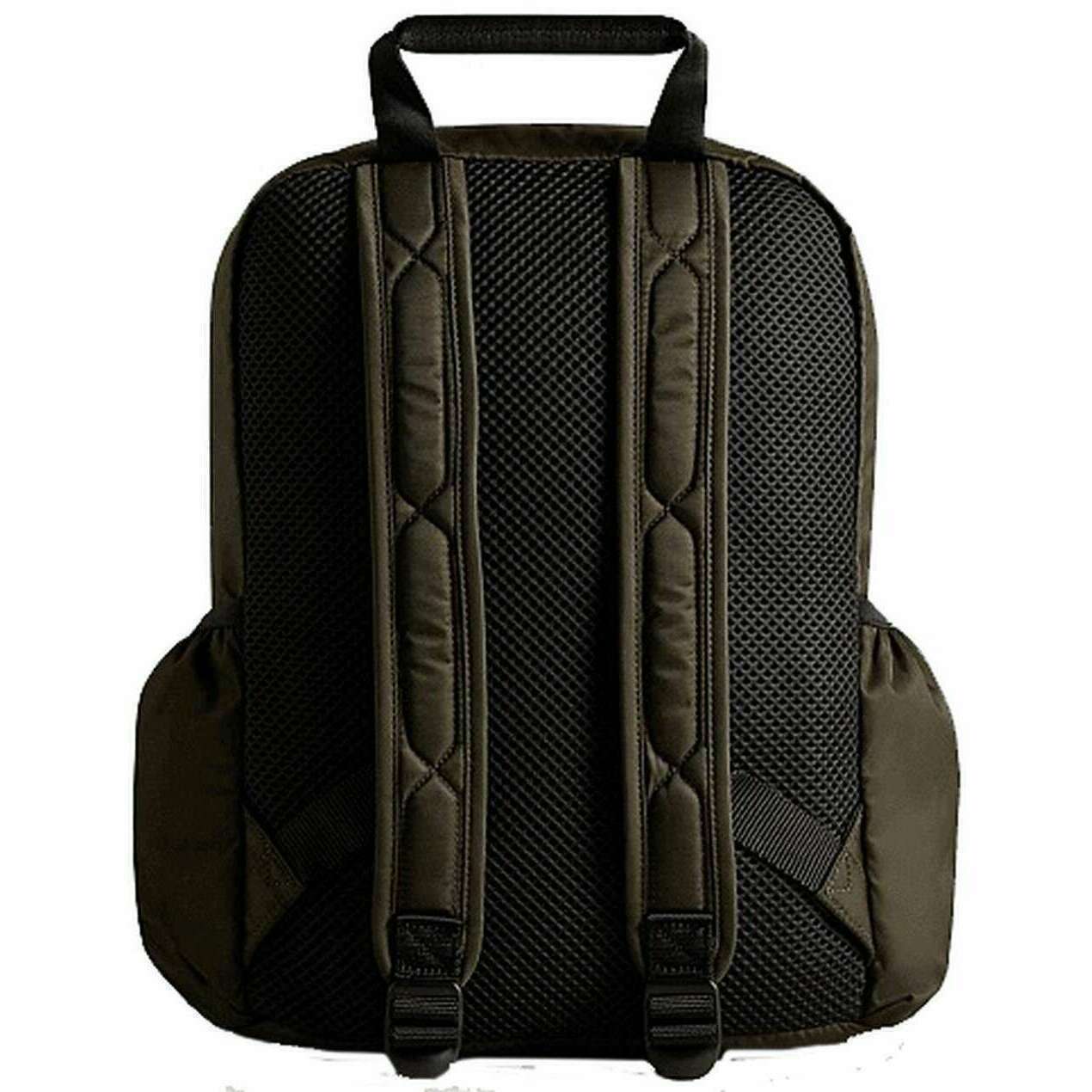 Manufactured from 100% nylon is this dark olive green unisex nylon small backpack by the designer Hunter. It measures 37cm(height) x 27cm(width) x 13cm(depth). All the bags come complete with hunter packaging. The Hunter Nylon Small Backpack - Dark Olive Green features a double zipper closure to ensure an easy access when needed and protection of your belongings falling out. This bag has been crafted with fully water-resistant materials to ensure a dry wear in any weathers or accidents. The 16L capacity allows space for all your essentials with the convenient elasticated side pockets perfect for bottles, internal padded sleeve pocket for a 13.5"" laptop, and the front zipper pocket for smaller items. The padded adjustable straps and back give optimal comfort whilst on your adventures. Completing this sleek and classic look is the Hunter branding on the front.