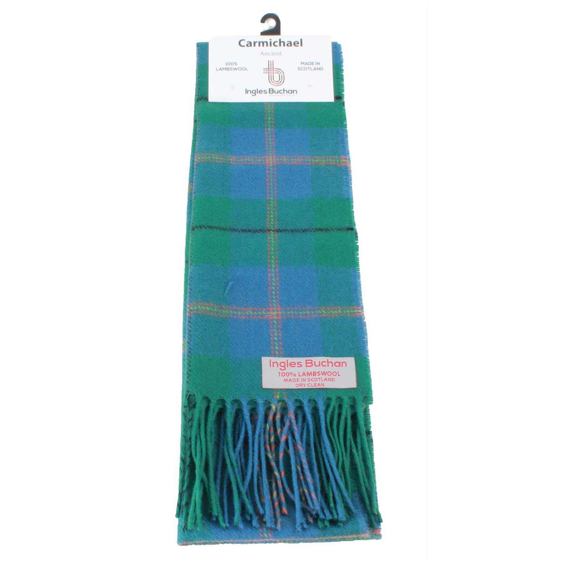 Perfect for men or women is this Ingles Buchan green/pale blue/yellow carmichael ancient lambswool scarf, it is also made from 100% lambswool. It measures 180cm(height) x 25cm(width). Also the green/pale blue/yellow scarf is designed in a tartan pattern, It is recommended to dry clean to keep this scarf in good condition. All the scarves come complete with ingles buchan tags The Ingles Buchan Carmichael Ancient Lambswool Scarf - Green/Pale Blue/Yellow is a classic colourful tartan piece that is sure to standout and provide you with a stylish fashionable look that would be a great addition to any wardrobe. Made using the highest quality of Lambswool this checkered green and blue modern scarf is of the upmost of comfort.