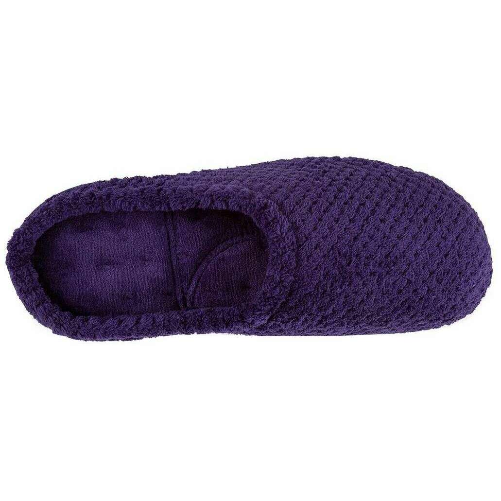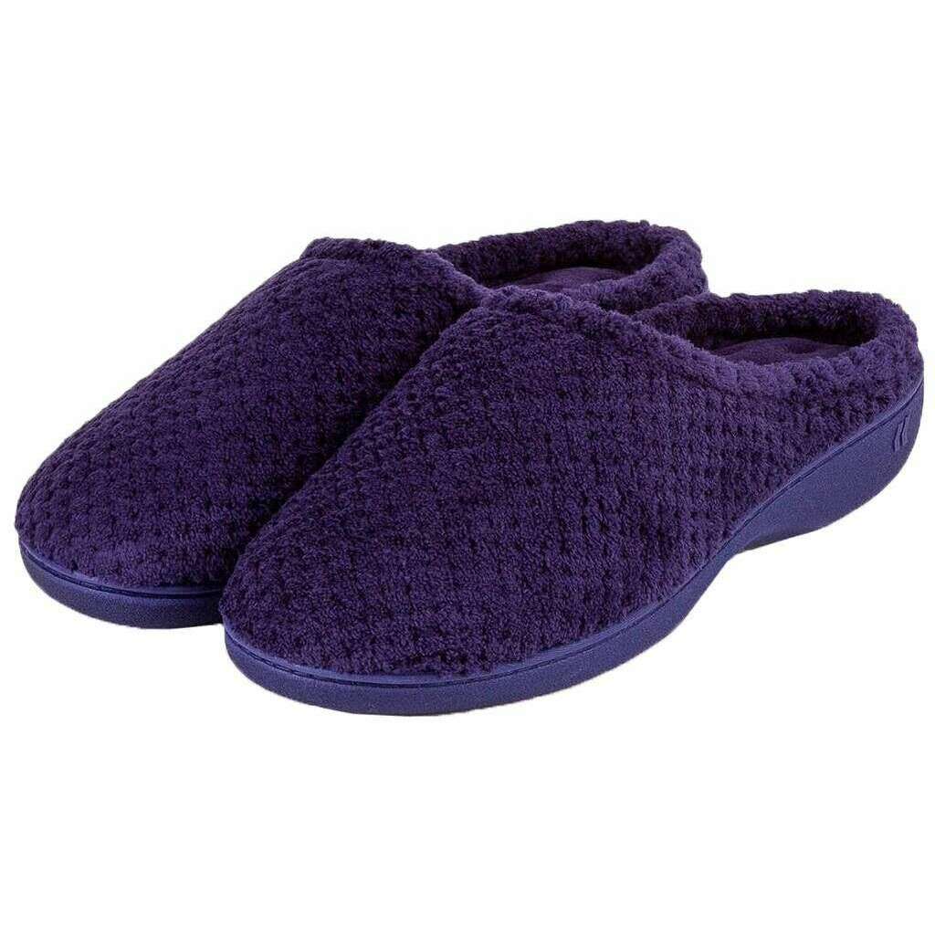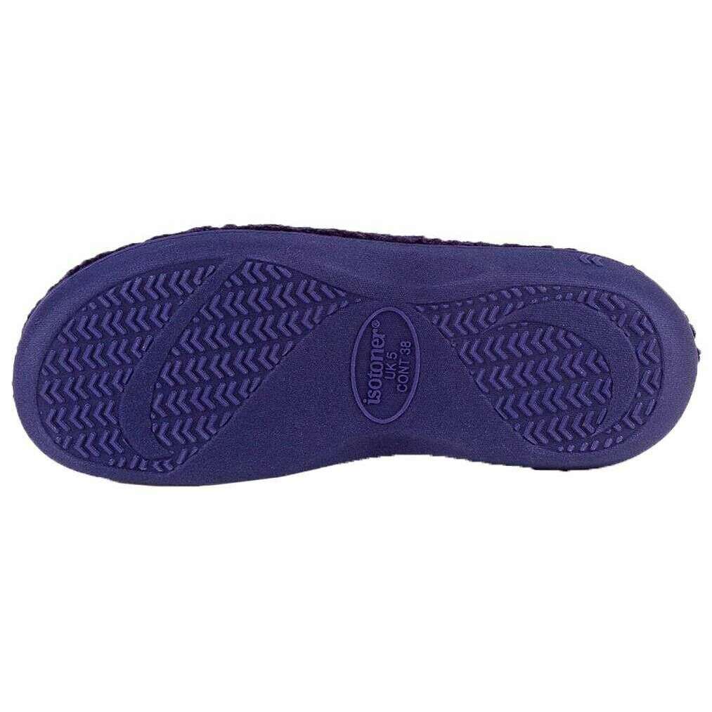 These women's popcorn terry mule slippers by the brand Isotoner are made from 100% polyester and are showcased in navy. Also the navy slippers are designed in a plain pattern, It is recommended to machine wash at 30 degrees to keep these slippers in good condition. All the slippers come complete with isotoner packaging. The Isotoner Popcorn Terry Mule Slippers - Navy offer exceptional comfort, support and warmth! Featuring 360 surround comfort memory foam and pillow step cushioned technology with a foam layer will feel like you re walking on a cloud with the extra secret sole for support of the heel, arch and toes. This mule style will keep your feet nice and toasty with the soft fluffy materials and coverage of the foot, whilst also being breathable with an open back.