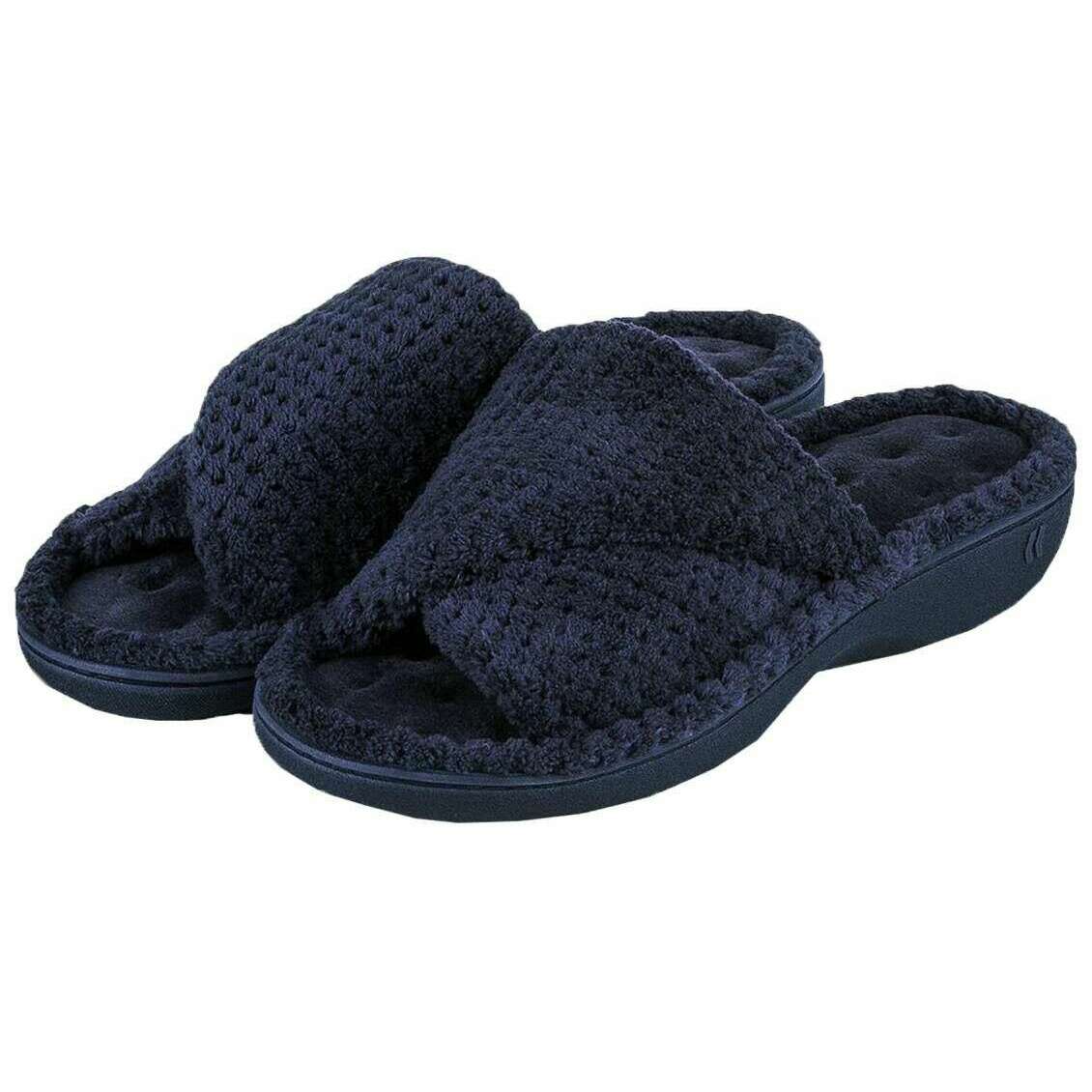 Isotoner Popcorn Turnover Open Toe Slippers - Navy