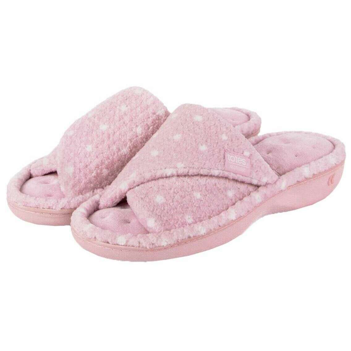 Isotoner Popcorn Turnover Open Toe Slippers - Pink Spot