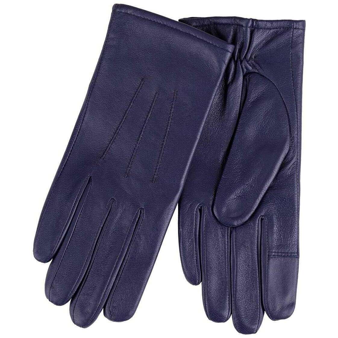 Isotoner SmarTouch™ Three Point Leather Gloves - Navy