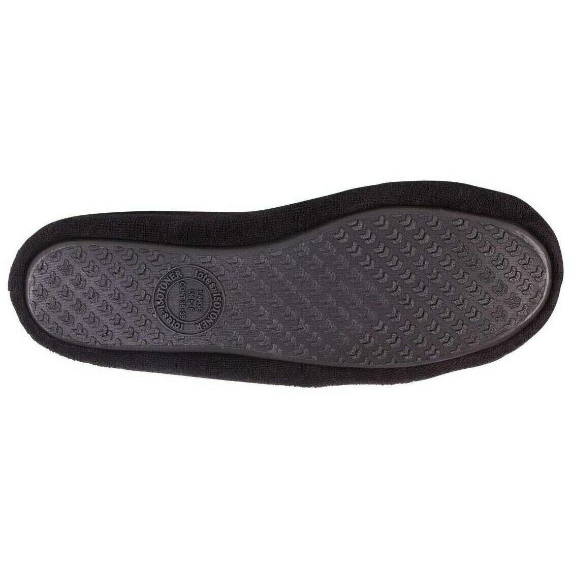 These women's terry ballerina slippers by the brand Isotoner are made from 78% cotton, 17% polyester and 5% elastane and are showcased in black. Also the black slippers are designed in a plain pattern, It is recommended to machine wash at 30 degrees to keep these slippers in good condition. All the slippers come complete with isotoner packaging. The Isotoner Terry Ballerina Slippers - Black are an essential in any lady s collection. Perfect for walking around the house with an added support, warmth and comfort from the pillow step cushioned technology with a foam layer, a durable sole and rich cotton material. The open top design keeps your feet from overheating leaving a breathable feel whilst the textured sole leaves a slip-resistant tread. Finished with a girly bow to complete this gorgeous pair.
