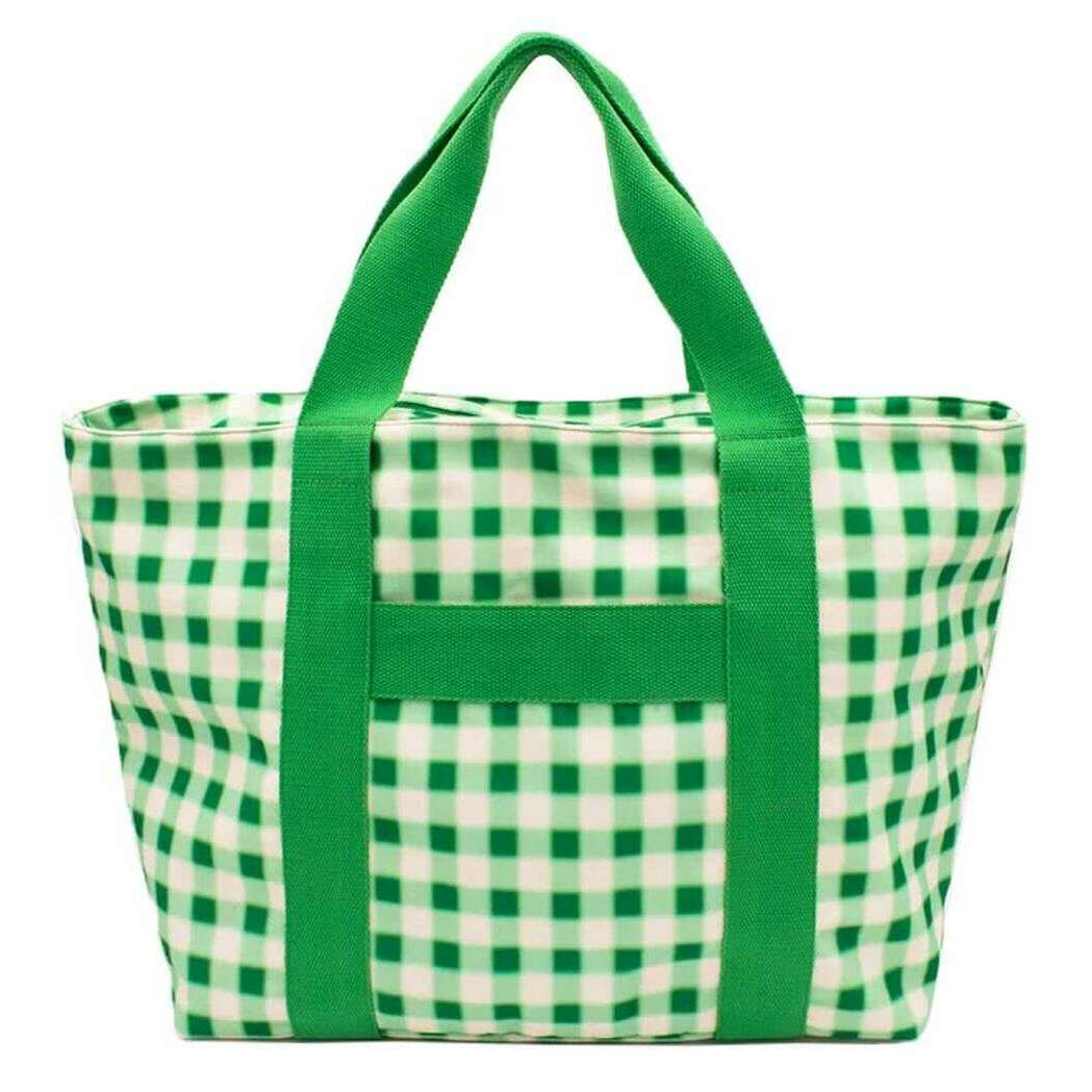 Kind Bag London Carryall Tote Bag - Blurred Plaid Green