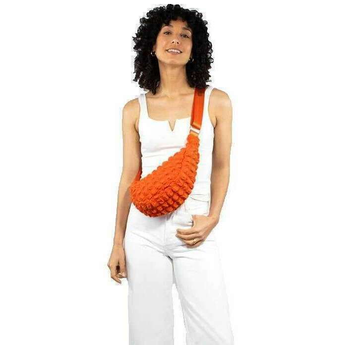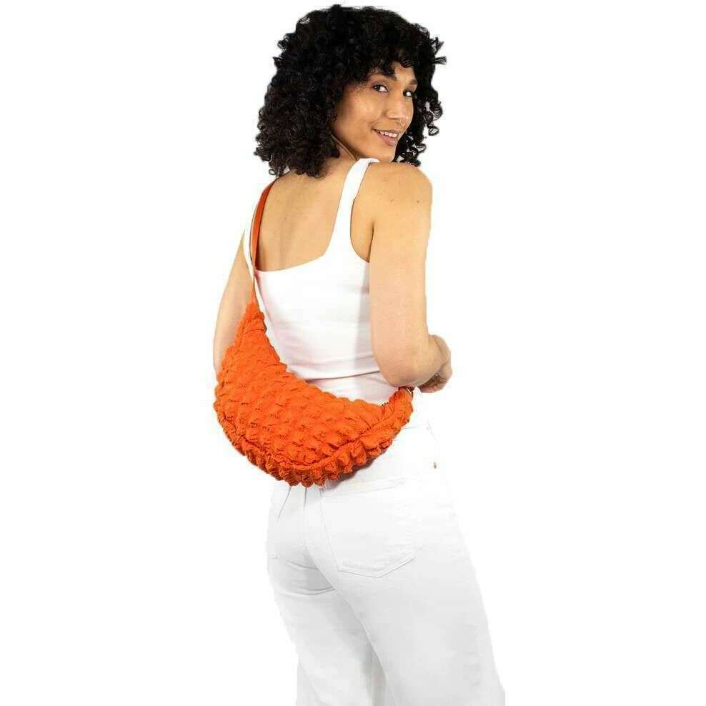 This well made women's cross body bag from Kind Bag London comes in a orange colour and is manufactured from 100% recycled plastic. It measures 18cm(height) x 35cm(width) x 10cm(depth). It is recommended to machine wash at 30degrees on a delicate setting and do not tumble dry to keep this bag in good condition. All the bags come complete with kind bag packaging. The Kind Bag London Cross Body Bag - Orange versatile and chic is the perfect everyday bag. This hands-free bag has been completely crafted from recycled materials that is made to last. Featuring a waffle textured design to add depth and dimension to your look, an adjustable strap for endless stylish options, interior pockets for organisation and strong stitching that allows you to hold up to 5 kg. Even though this bag may look small and compact it has a surprisingly large main compartment that is great at holding all of your essentials for a fun day out.