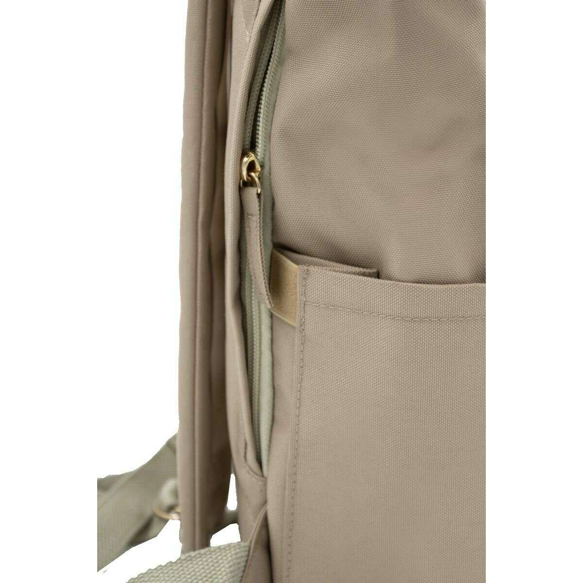Brought to you by the brand Kind Bag London, this beige unisex hackney medium backpack is made from 100% recycled plastic. It measures 33cm(height) x 25.5cm(width) x 12.5cm(depth). All the bags come complete with kind bag london packaging. The Kind Bag London Hackney Medium Backpack - Beige is a high-quality cruelty free and vegan bag crafted from recycled plastic bottles and water-resistant fabric. This bag has lots of features that makes it the perfect fit for anyone such as hidden magnets within the handle straps to keep them together, a 12 centimetre roll top for an extendable capacity, an anti-theft pocket between the back padding and main compartment, padded back and shoulder straps for a comfortable wear, two hooks to hold keys, 2 side pockets for water bottles or umbrellas, front zipped pocket, padded laptop pocket fitting most 13" models, 2 small pockets and small zipped interior pocket. All of these features combined create the ideal backpack for your everyday adventures or travelling whilst the cute design will compliment any outfit.