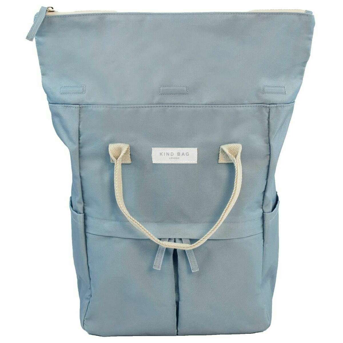 Brought to you by the brand Kind Bag London, this light grey unisex hackney medium backpack is made from 100% recycled plastic. It measures 33cm(height) x 25.5cm(width) x 12.5cm(depth). All the bags come complete with kind bag london packaging. The Kind Bag London Hackney Medium Backpack - Light Grey is a high-quality cruelty free and vegan bag crafted from recycled plastic bottles and water-resistant fabric. This bag has lots of features that makes it the perfect fit for anyone such as hidden magnets within the handle straps to keep them together, a 12 centimetre roll top for an extendable capacity, an anti-theft pocket between the back padding and main compartment, padded back and shoulder straps for a comfortable wear, two hooks to hold keys, 2 side pockets for water bottles or umbrellas, front zipped pocket, padded laptop pocket fitting most 13" models, 2 small pockets and small zipped interior pocket. All of these features combined create the ideal backpack for your everyday adventures or travelling whilst the cute design will compliment any outfit.