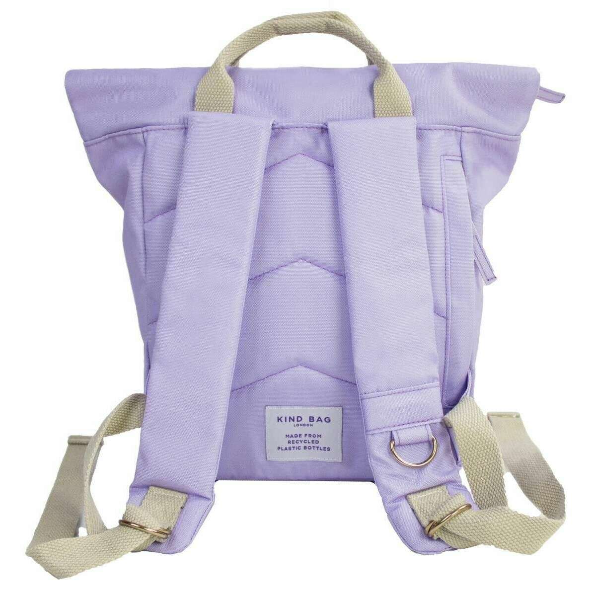 Manufactured from 100% recycled plastic is this lilac unisex hackney mini backpack by the designer Kind Bag London. It measures 26cm(height) x 22cm(width) x 12cm(depth). All the bags come complete with kind bag london packaging. The Kind Bag London Hackney Mini Backpack - Lilac is a high-quality cruelty free and vegan bag crafted from recycled plastic bottles and water-resistant fabric. This bag has lots of features that makes it the perfect fit for anyone such as hidden magnets within the handle straps to keep them together, a 12 centimetre roll top for an extendable capacity, an anti-theft pocket between the back padding and main compartment, padded back and shoulder straps for a comfortable wear, two hooks to hold keys, elastic inside to hold water bottles or umbrellas, front zipped pocket, padded back pocket for tablets, 2 small pockets and small zipped interior pocket. All of these features combined create the ideal backpack for your everyday adventures or travelling whilst the cute design will compliment any outfit.