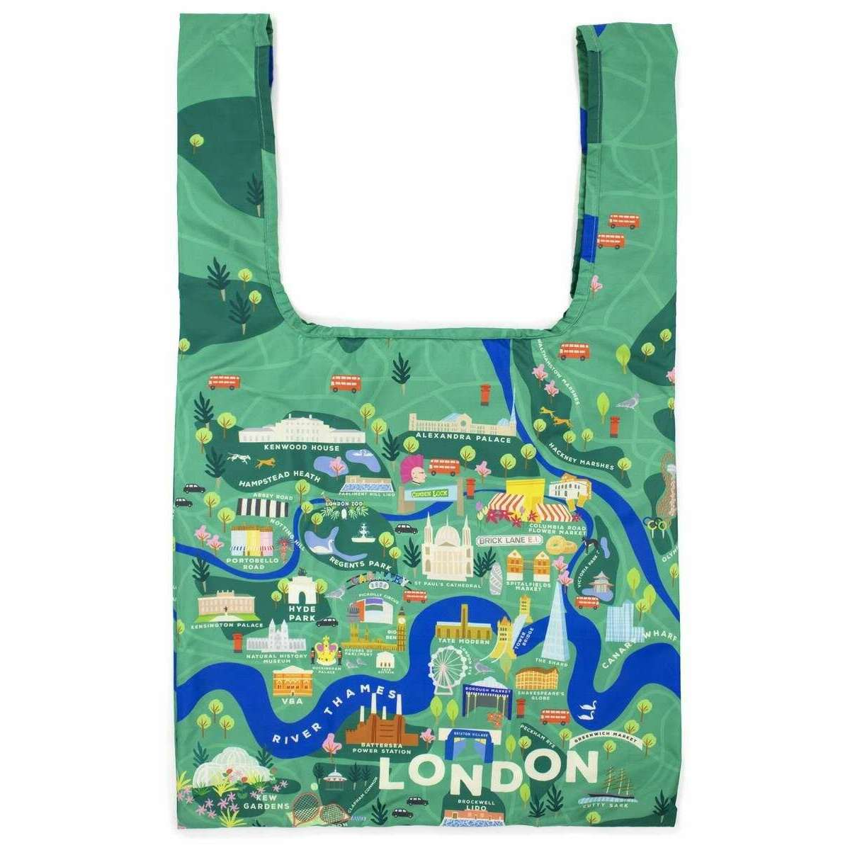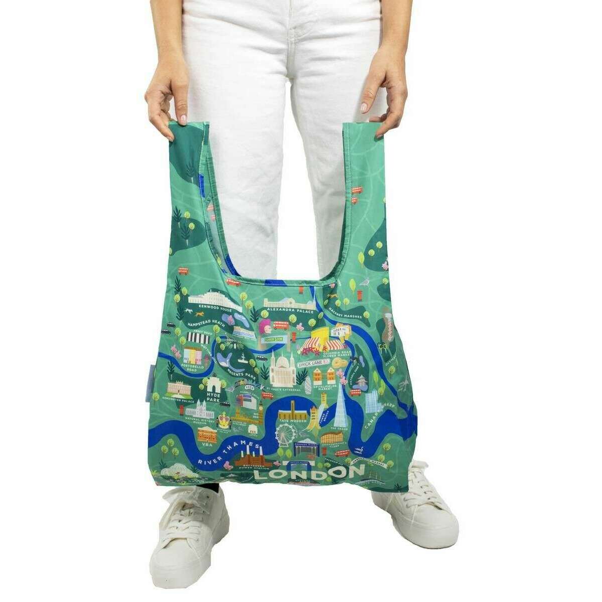 This unisex medium reusable bag by the brand Kind Bag London is made from 100% recycled plastic and is showcased in green. It measures 64cm(height) x 39cm(width) x 17cm(depth). All the bags come complete with kind bag london packaging. The Kind Bag London Medium Reusable Bag - London Map Green is needed in everyone’s collection great for any use such as food shopping, beach days, travelling, etc. Perfect for slotting into your pocket or any handbag due to the attached small pouch that it is easy folded into. Crafted from high-quality cruelty free and vegan recycled water-resistant fabric that has been strongly stitched, holds up to 20kg made to last. The wide arms ensure comfort and a secure wear. The unique and cool pattern adds a pop of colour and style to your look.