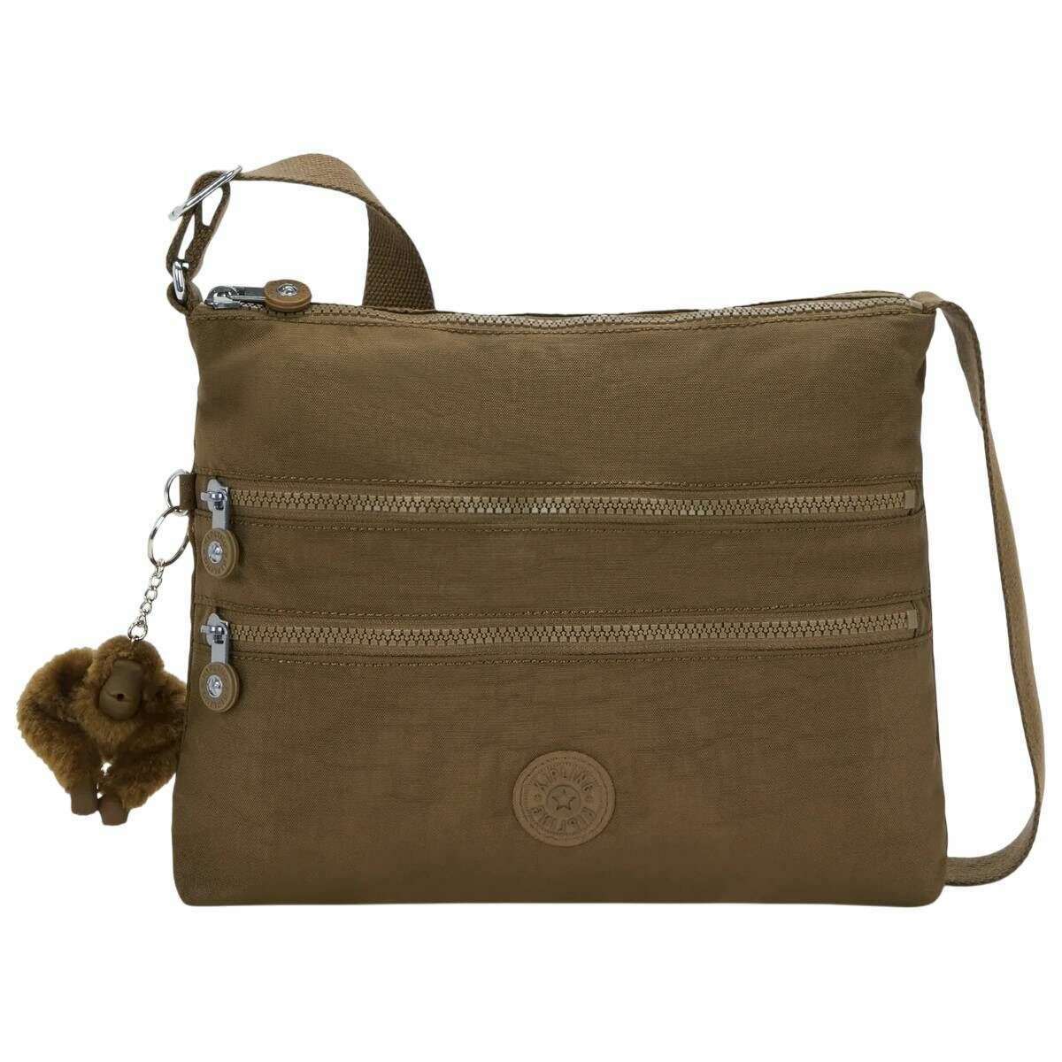 ({IF["This well made women's alvar medium shoulder bag from Kipling comes in a smooth khaki colour and is manufactured from 56% recycled polyamide and 44% polyamide. It measures 26cm(height) x 33cm(width) x 4.5cm(depth). All the bags come complete with kipling packaging. The Kipling Alvar Medium Shoulder Bag - Smooth Khaki is a slim, compact cross?body design that combines practicality with effortless everyday style. Light to carry and easy to organise, it offers generous storage through multiple zipped compartments while maintaining a sleek silhouette. Its durable water?repellent finish makes it ideal for daily outings, commutes, or leisurely city strolls. Designed for flexibility, the adjustable shoulder strap allows the wearer to carry it comfortably over the shoulder or across the body for hands?free convenience. The bag features two zipped main compartments, each fitted with a zipped pocket, a mobile phone pocket, a pouch pocket for a wallet, and a pen loop to keep essentials neatly arranged. On the exterior, two zipped front pockets and a zipped rear pocket provide additional space for quick?access items. Finished with the round Kipling logo and the iconic Kipling monkey charm, the Alvar is lightweight, durable, and always practical perfect for keeping belongings organised and within easy reach wherever the day leads."!=""]})