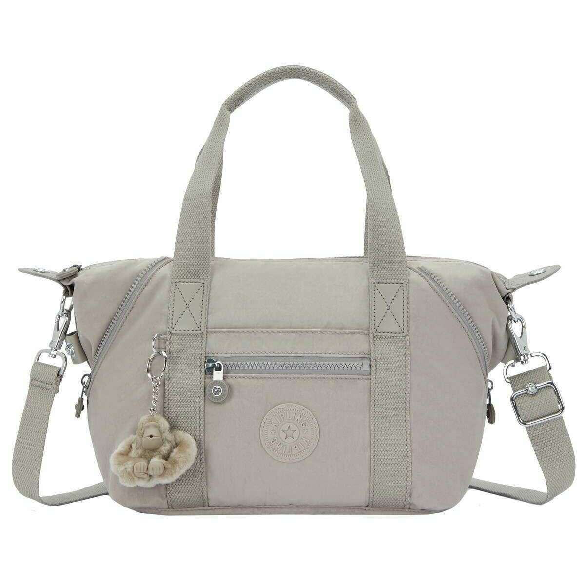 Brought to you by the brand Kipling, this grey women's art mini shoulder bag is made from 100% polyamide. It measures 20cm(height) x 39cm(width) x 18.5cm(depth). All the bags come complete in kipling packaging. The Kipling Art Mini Shoulder Bag - Grey offers a main section with zipped pocket, phone and wallet compartment and a pen loop. Externally it offers a zipped and open pocket which gives 10L capacity of storage. The Art Mini is a practical and stylish bag with an adjustable shoulder strap as well as dual carry handles to give you carrying options depending on your mood. This piece is the perfect everyday companion with a water repellent finish and a Kipling monkey attachment.