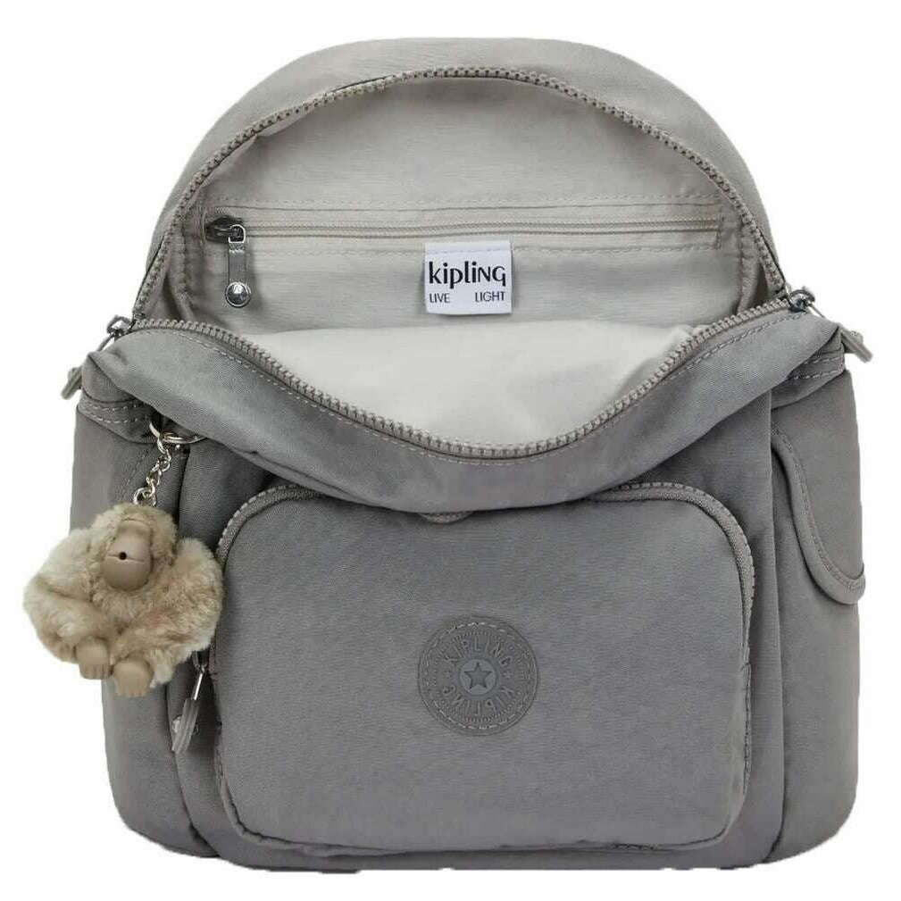 This well made women's city pack mini backpack from Kipling comes in a inviting grey colour and is manufactured from 56% recycled polyamide and 44% polyamide. It measures 29.2cm(height) x 27.3cm(width) x 14cm(depth). All the bags come complete with kipling packaging. The Kipling City Pack Mini Backpack - Inviting Grey is the ultimate blend of fashion and function, designed for those who want to stay organized without sacrificing style. The secure closures and multiple compartments with zippered pockets make it easy to keep your essentials neatly arranged and safe, while the comfortable, adjustable straps make carrying effortless all day long. Finished with signature detailing and a playful monkey charm, this bag brings personality and practicality together.