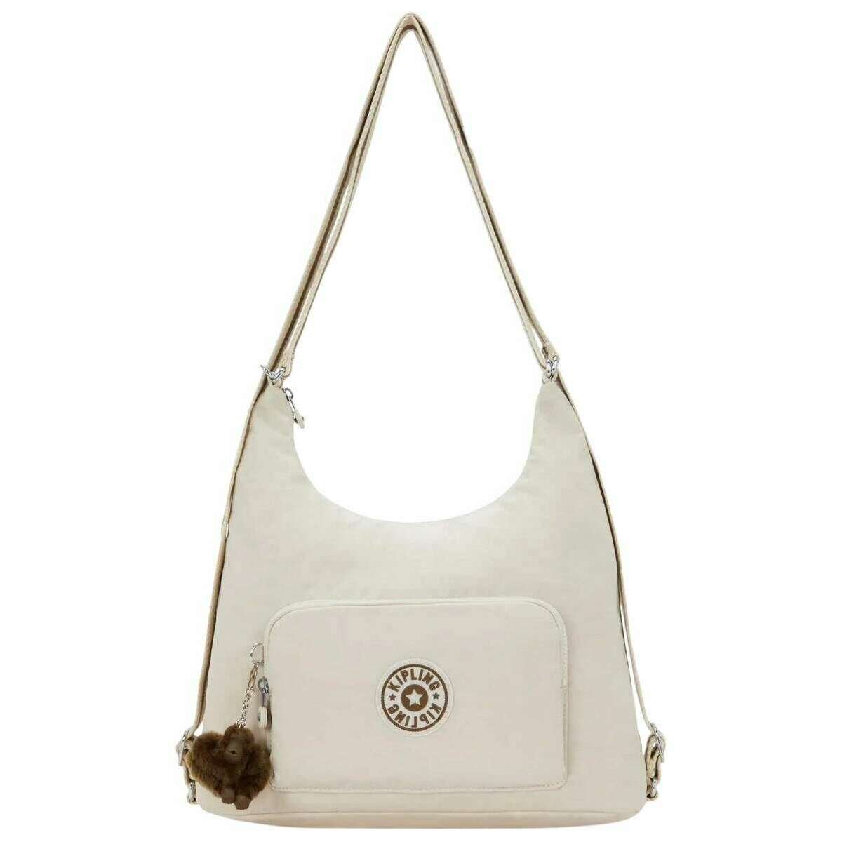 Brought to you by the brand Kipling, this soft sand cream women's yenna medium shoulder bag is made from 56% recycled polyamide and 44% polyamide. It measures 36cm(height) x 13.5cm(width) x 38cm(depth). All the bags come complete with kipling packaging. The Kipling Yenna Medium Shoulder Bag - Soft Sand Cream is designed for anyone who values versatility and everyday practicality. Is it a shoulder bag? Is it a backpack? The Yenna is whatever the wearer needs it to be. With convertible styling and adjustable straps, it can be carried comfortably in multiple ways to suit any day or activity. Its spacious zipped main compartment opens to reveal one zipped pocket and two open pockets, ideal for keeping essentials organised. Two pen pockets and a built?in key leash add extra convenience, ensuring smaller items stay tidy and easy to reach. A zipped front pocket on the exterior provides quick-access storage for must?have items. Finished with an adjustable strap for personalised comfort and Kipling s iconic monkey keychain, the YENNA offers a smart balance of function, fun and modern design.