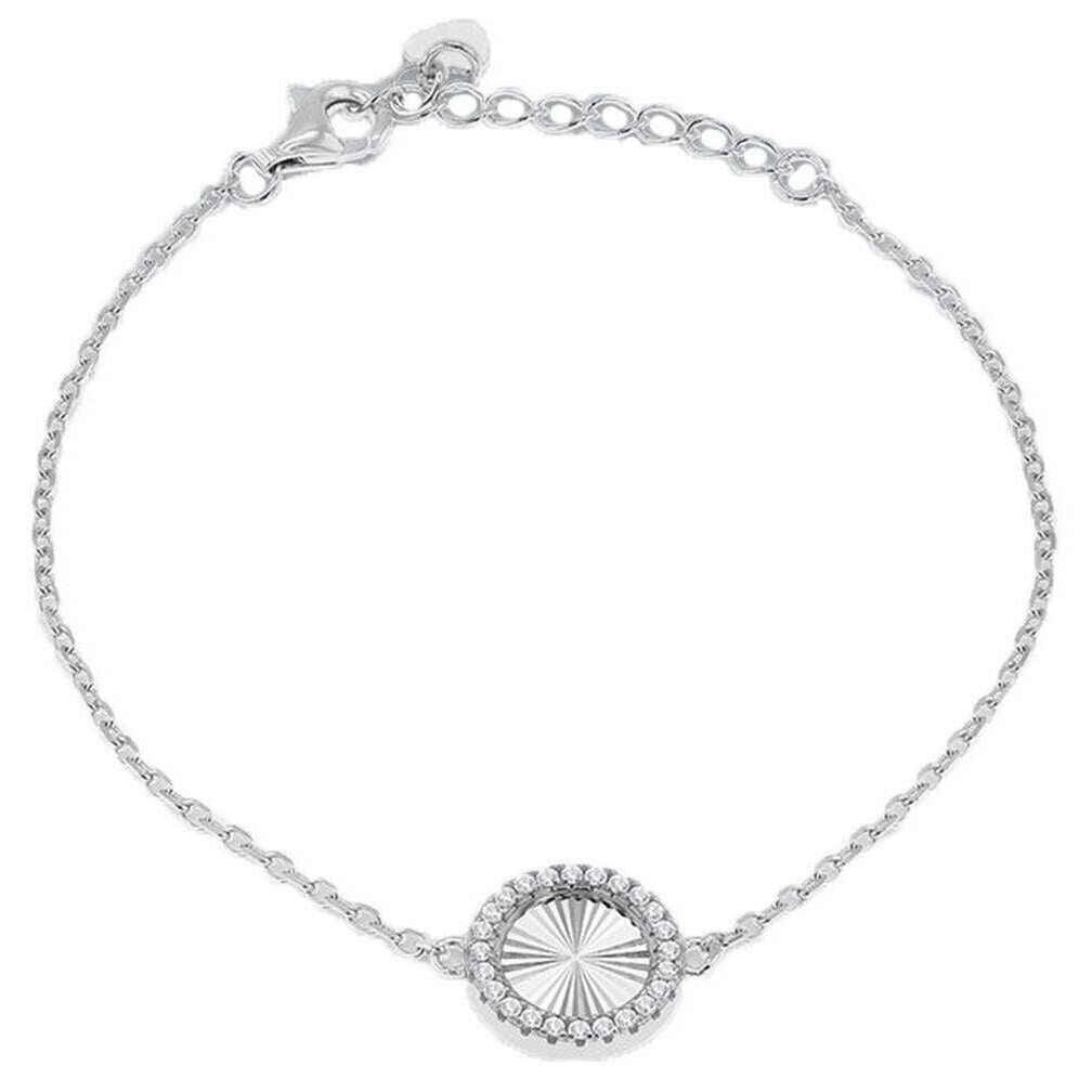 This women's rainbow circle adjustable bracelet has been made from sterling silver, featured in a silver colour and is from the brand KJ Beckett. All the bracelets come complete with packaging. The KJ Beckett Rainbow Circle Adjustable Bracelet - Silver is a bright and contemporary sterling silver rainbow circle bracelet that adds a subtle pop of colour to your look. Crafted from sterling silver and finished with sleek rhodium plating, the circular charm features vibrant rainbow detailing accented with sparkling 1mm cubic zirconia for a touch of everyday brilliance. A versatile and uplifting piece, this bracelet is ideal for gifting or completing a coordinated jewellery set.