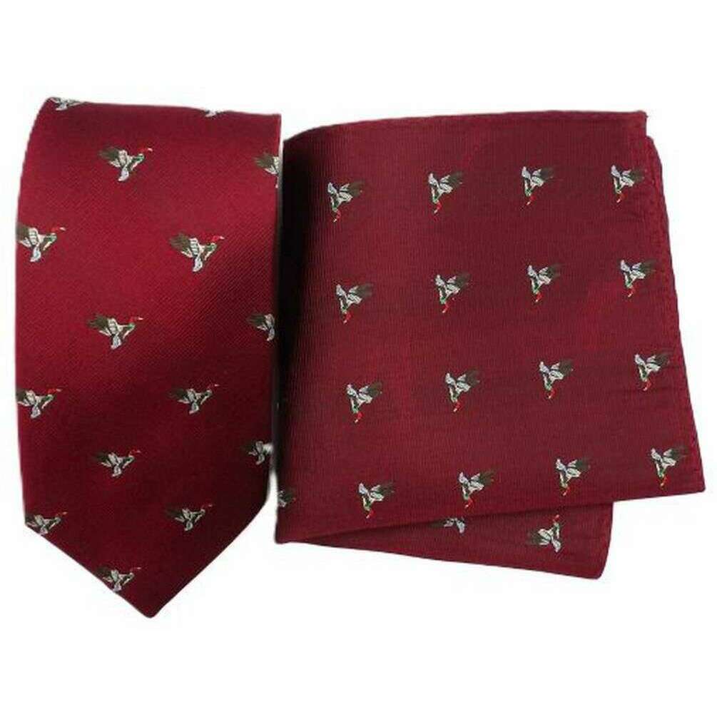 Perfect for men is this Knightsbridge Neckwear burgundy duck silk tie and pocket square set, it is also made from 100% silk. Also the burgundy tie and pocket square set is designed in a unique pattern, It is recommended to dry clean only to keep this tie and pocket square set in good condition. All the tie and pocket square sets come complete with knightsbridge neckwear presentation box The Knightsbridge Neckwear Duck Silk Tie and Pocket Square Set - Burgundy a unique burgundy duck design that will be certain to impress any stylish gentleman. This tie and pocket square is ideal to wear for any occasion, adding a dash of colour to your attire at the same time.