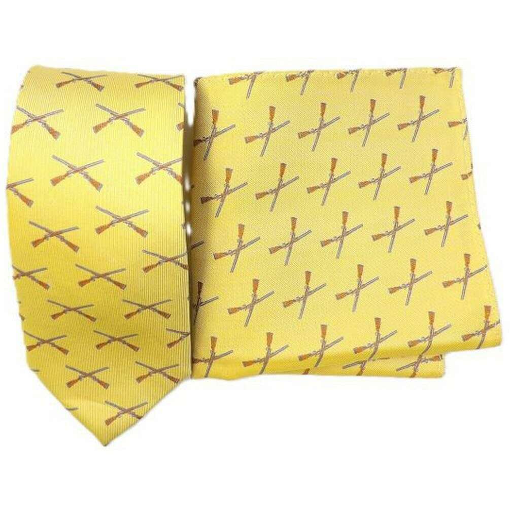 This men's gun woven silk tie and pocket square set has been made from 100% silk, featured in a yellow colour and is from the brand Knightsbridge Neckwear. Also the yellow tie and pocket square set is designed in a unique pattern, It is recommended to dry clean only to keep this tie and pocket square set in good condition. All the tie and pocket square sets come complete with knightsbridge neckwear presentation box The Knightsbridge Neckwear Gun Woven Silk Tie and Pocket Square Set - Yellow a unique and funky design that will be certain to impress any stylish gentleman. This tie and pocket square is ideal to wear for any occasion, adding a dash of colour to your attire at the same time.
