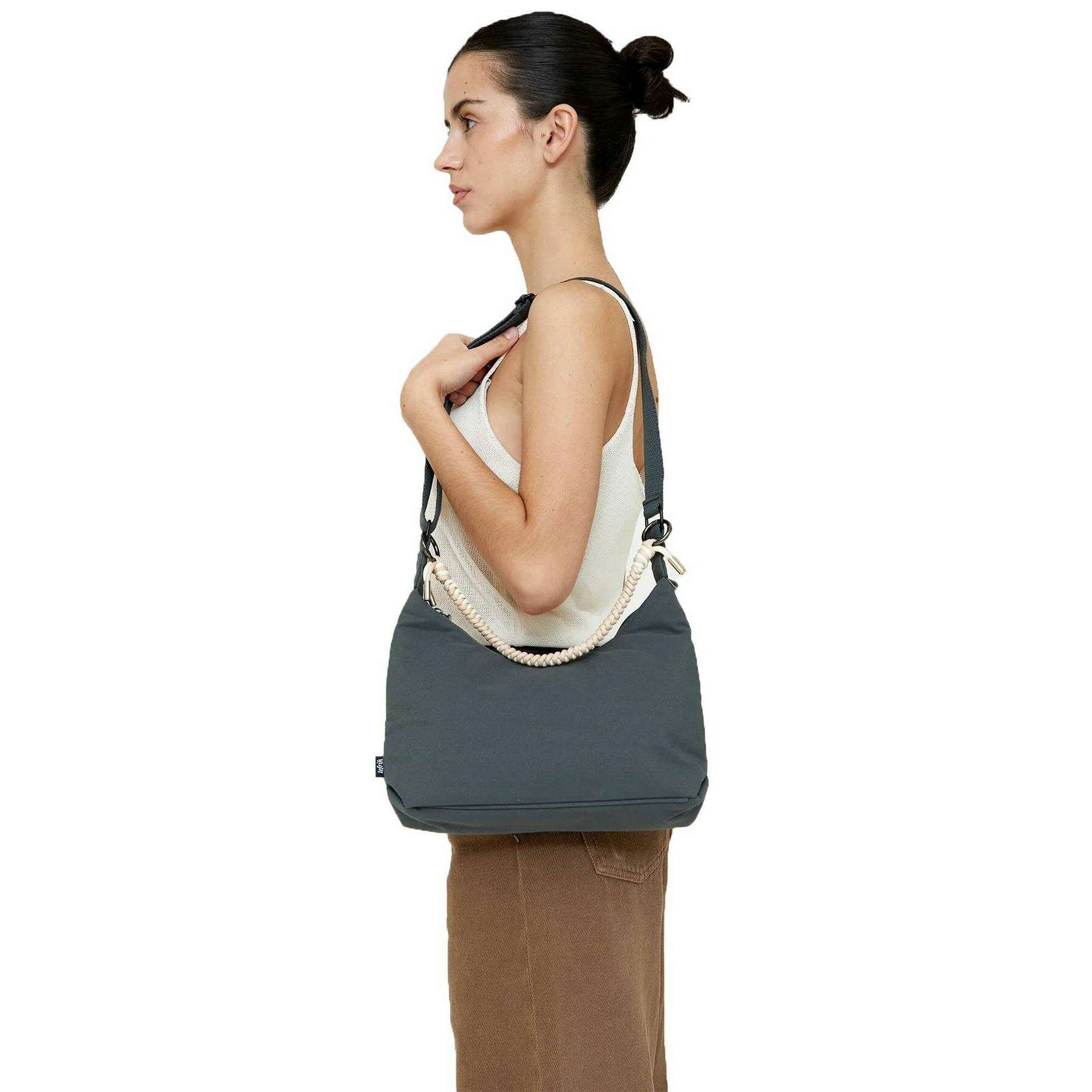 Perfect for women is this Lefrik laurel leaf green arles bico shoulder bag, it is also made from 100% vegan oxford rpet polyester. It measures 28cm(height) x 17cm(width) x 8cm(depth). It is recommended to cold wash and air dry to keep this bag in good condition. All the bags come complete with lefrik packaging. The Lefrik Arles Bico Shoulder Bag - Laurel Leaf Green is a modern, eco-conscious accessory that seamlessly blends style with sustainability. Designed with a subtle crescent shape, this bag offers ease of carrying. With ample space for your essentials, this shoulder bag features an adjustable strap, braided shoulder strap, an easy zip closure and one zipped inner pocket to make sure you can keep your belongings organized. Whether you're navigating city streets or enjoying a weekend getaway, this bag is ideal for both everyday errands and casual outings. Featuring water-resistant canvas for added texture and sophistication, this bag is completely vegan.