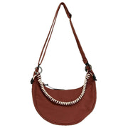 Brought to you by the brand Lefrik, this bronze brown women's arles lua shoulder bag is made from 100% vegan oxford rpet polyester. It measures 21cm(height) x 18.3cm(width) x 5.5cm(depth). It is recommended to cold wash and air dry to keep this bag in good condition. All the bags come complete with lefrik packaging. The Lefrik Arles Lua Shoulder Bag - Bronze Brown is a stylish and versatile accessory designed to add a pop of colour and functionality to your wardrobe. This half-moon bag with zippered closure also features an inner zipped pocket to keep your belongings safe and accessible. Its sleek and modern design, exuding contemporary elegance with an adjustable cotton webbing strap and braided top handle, which allows you to customize the fit to your preference. You can wear it comfortably over the shoulder or across the body for hands-free convenience. Featuring water-resistant canvas for added texture and sophistication, this bag is completely vegan.