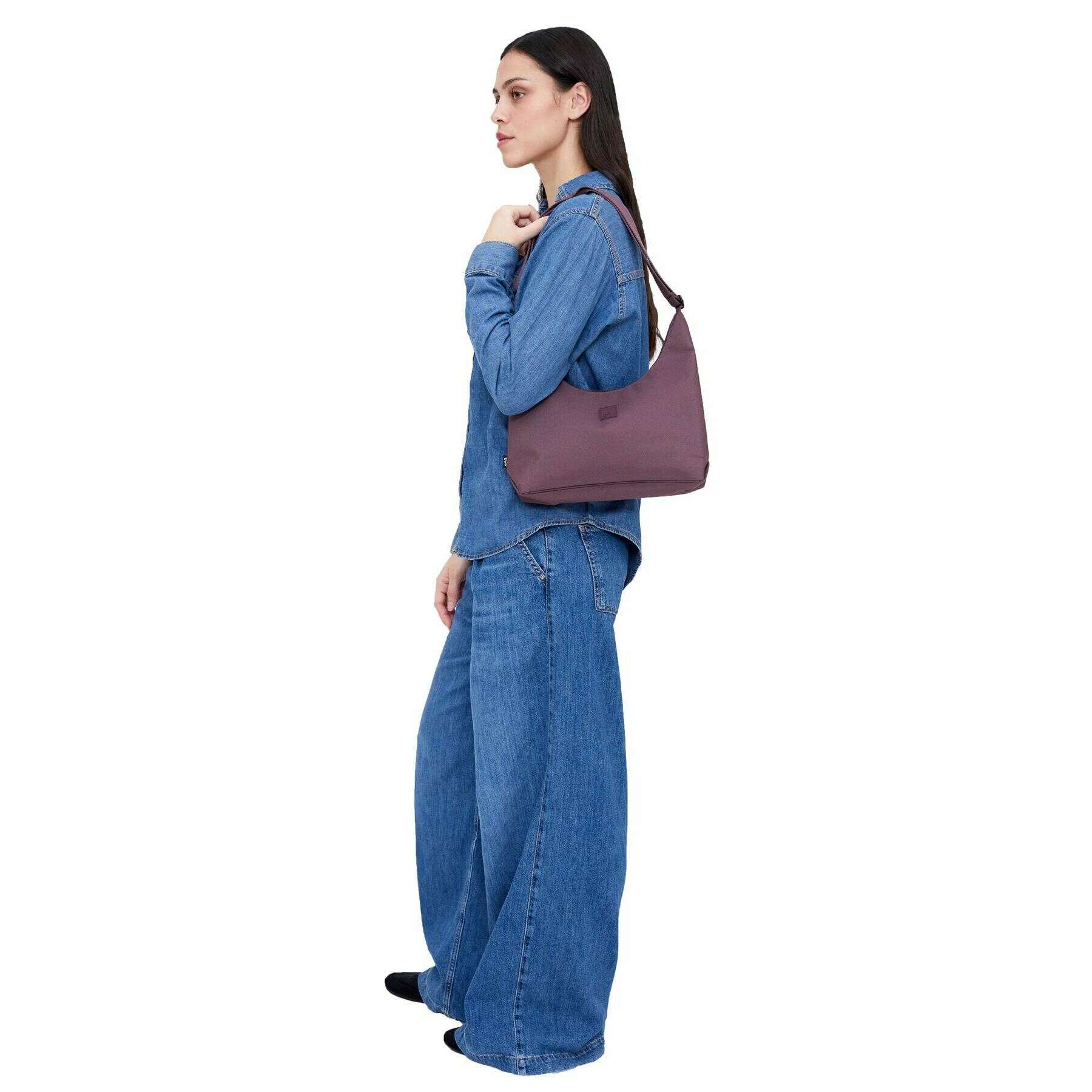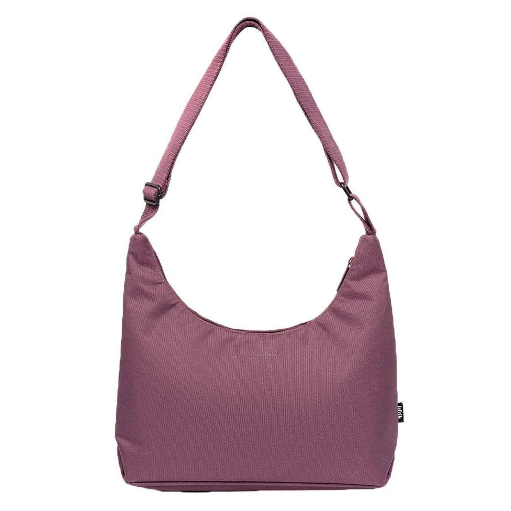 Brought to you by the brand Lefrik, this maroon purple unisex bico shoulder bag is made from 100% vegan oxford rpet fabric. It measures 28cm(height) x 17cm(width) x 8cm(depth). All the bags come complete with lefrik packaging. The Lefrik Bico Shoulder Bag - Maroon Purple is a modern, eco-conscious accessory that seamlessly blends style with sustainability. Designed with a subtle crescent shape, this bag offers ease of carrying. With ample space for your essentials, this shoulder bag features an adjustable strap, an easy zip closure and one zipped inner pocket to make sure you can keep your belongings organized. Whether you're navigating city streets or enjoying a weekend getaway, this bag is ideal for both everyday errands and casual outings.