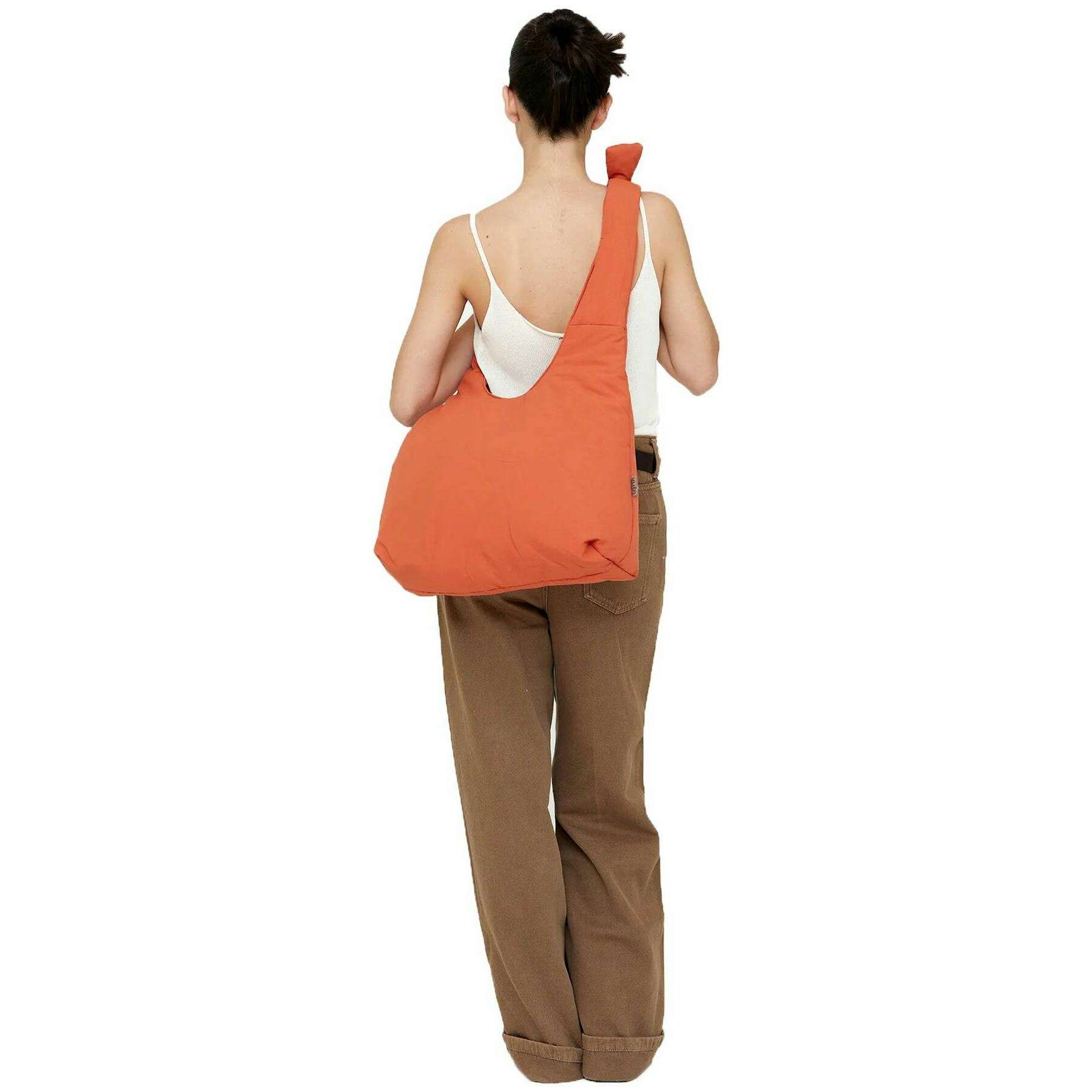Introducing this women's biwa puffy shoulder bag by Lefrik, it is manufactured from 100% vegan oxford rpet polyester in a koi orange colour. It measures 35cm(height) x 46cm(width) x 14cm(depth). It is recommended to cold wash and air dry to keep this bag in good condition. All the bags come complete with lefrik packaging. The Lefrik Biwa Puffy Shoulder Bag - Koi Orange is a stylish and versatile shoulder bag that combines functionality with a delightful design. With a capacity of approximately 22.5 litres, this bag can be used both as a shoulder bag and as a messenger bag thanks to its adjustable sliding knots. Lightweight and water resistant, this vegan bag features a large main compartment and a zipped pocket for small items, secured by a magnetic closure. Quilted and pleasant to the touch, this bag makes a great gift idea.