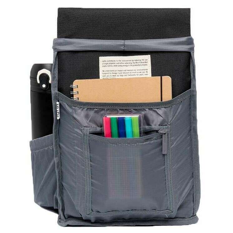 Brought to you by the brand Lefrik, this black unisex kaut mini backpack is made from 100% recycled oxford rpet fabric. It measures 30cm(height) x 22cm(width) x 13cm(depth). All the bags come complete with lefrik packaging. The Lefrik Kaut Mini Backpack - Black is extremely practical and comfortable. This mini version of the iconic Kaut model features a large main compartment and a separate pocket for notebooks or small electronic devices. Perfect for school, work or play, this backpack is lightweight and water resistant. The quick access pocket on the flap and security pocket on the back allow you to store small items comfortably. With just the right amount of space, this vegan and sustainable backpack is designed for convenience.