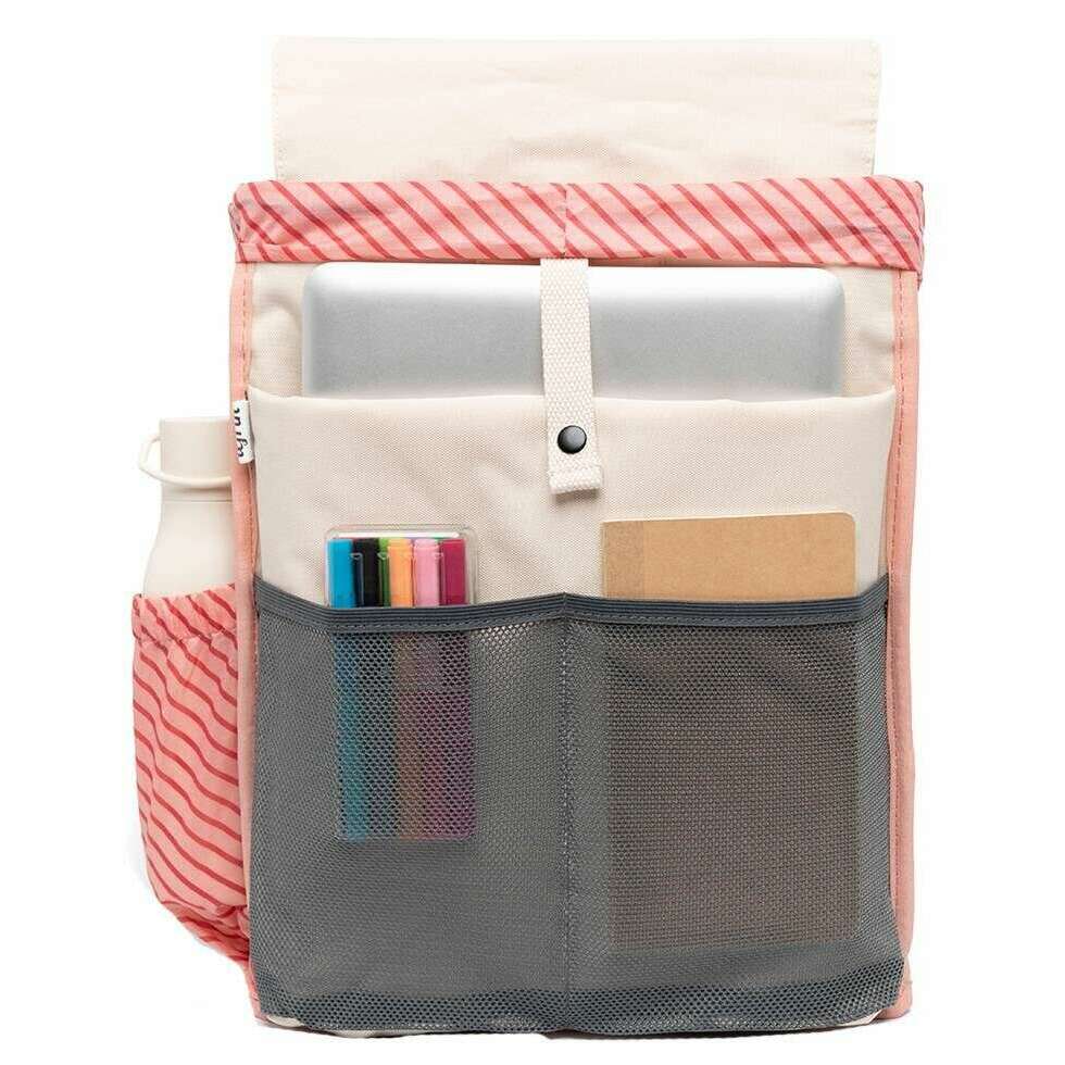 Introducing this unisex kaut stripes backpack by Lefrik, it is manufactured from 100% recycled oxford rpet fabric in a ecru cream colour. It measures 40cm(height) x 30cm(width) x 16cm(depth). All the bags come complete with lefrik packaging. The Lefrik Kaut Stripes Backpack - Ecru Cream is the perfect rounded silhouette bag that suits any style! Extremely practical and comfortable, this design features a large main compartment, padded laptop pocket for laptops up to 13.6", two separate organisers, interior bottle pocket, front zipped pocket and a security pocket to the back to keep your items safe and secure. The large flap closure with metal hook fastening makes finding important things like wallet and keys faster! With padded and adjustable handles, this lightweight backpack is water and scratch resistant and will be an indispensable accessory of your daily life! Crafted from RPET materials making this bag vegan and sustainable.