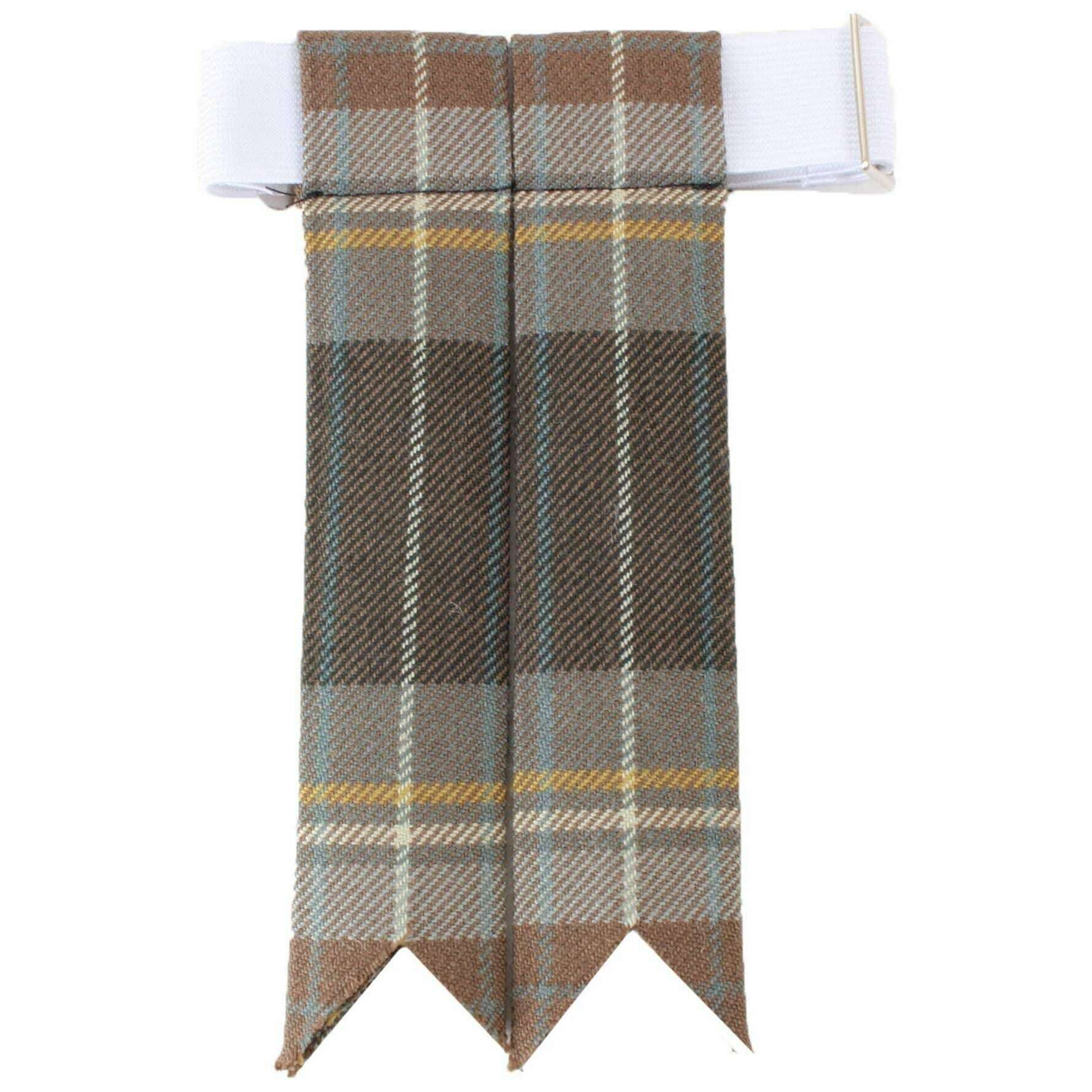 Using grey 100% pure new wool, these braeraich holywood weathered tartan flashes by Locharron of Scotland are perfect for men and a must have. It measures 17.4cm(height) x 7.5cm(width). Also the grey socks are designed in a tartan pattern, Locharron of Scotland have made these braeraich holywood weathered tartan flashes in Scotland. It is recommended to dry clean only to keep these socks in good condition. All the socks come complete in locharron of scotland packaging. The Locharron of Scotland Braeraich Holywood Weathered Tartan Flashes - Grey will make the perfect accessory to your Kilt Hose (socks), finishing your outfit with traditional flair. They are fitted with an elasticated attachment which goes around the cuff of your socks, adding decoration for those special occasions whilst also being a comfortable wear. Designed with double ribbons they are a must have.