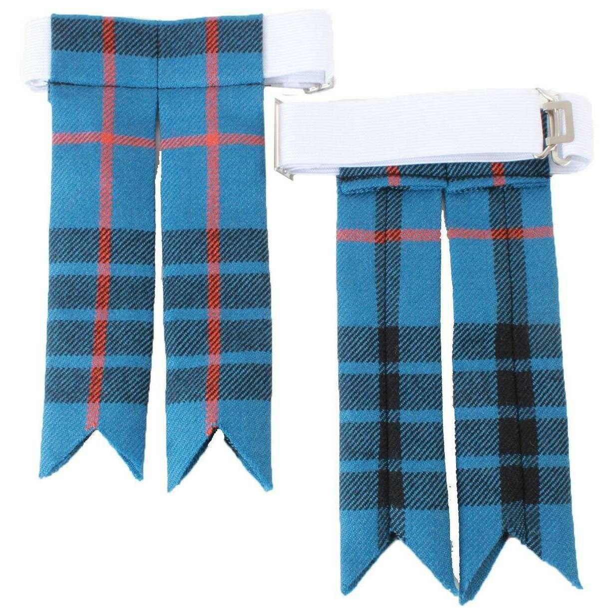 These men's reiver mackay ancient tartan flashes by the brand Locharron of Scotland are made from 100% pure new wool and are showcased in blue. It measures 17.4cm(height) x 7.5cm(width). Also the blue socks are designed in a tartan pattern, Locharron of Scotland have made these reiver mackay ancient tartan flashes in Scotland. It is recommended to dry clean only to keep these socks in good condition. All the socks come complete in locharron of scotland packaging. The Locharron of Scotland Reiver MacKay Ancient Tartan Flashes - Blue will make the perfect accessory to your Kilt Hose (socks), finishing your outfit with traditional flair. They are fitted with an elasticated attachment which goes around the cuff of your socks, adding decoration for those special occasions whilst also being a comfortable wear. Designed with double ribbons they are a must have.