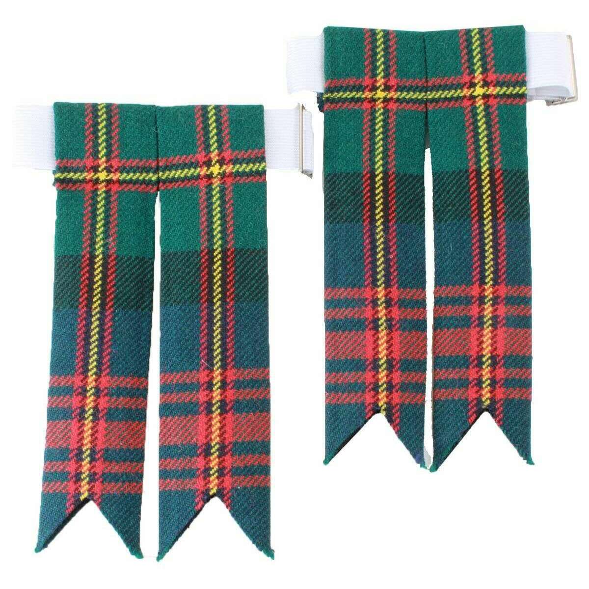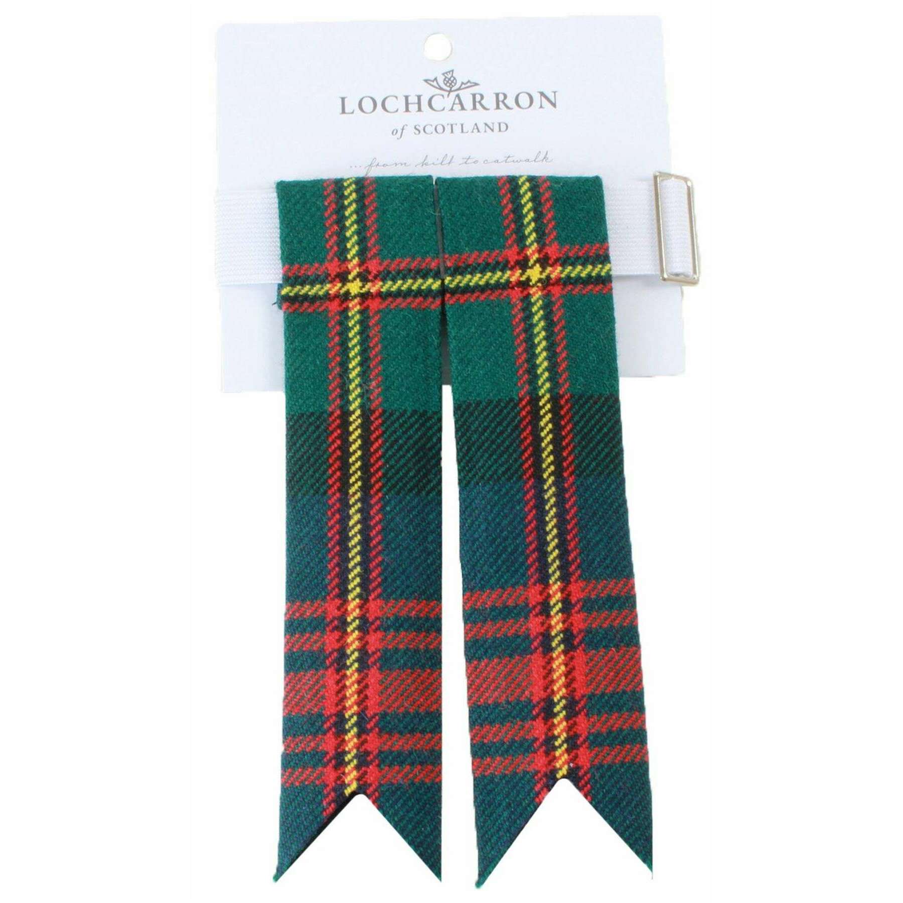 Brought to you by the brand Locharron of Scotland, these green/navy/red men's strome maclennan modern tartan flashes are made from 100% pure new wool. It measures 17.4cm(height) x 7.5cm(width). Also the green/navy/red socks are designed in a tartan pattern, Locharron of Scotland have made these strome maclennan modern tartan flashes in Scotland. It is recommended to dry clean only to keep these socks in good condition. All the socks come complete in locharron of scotland packaging. The Locharron of Scotland Strome Maclennan Modern Tartan Flashes - Green/Navy/Red will make the perfect accessory to your Kilt Hose (socks), finishing your outfit with traditional flair. They are fitted with an elasticated attachment which goes around the cuff of your socks, adding decoration for those special occasions whilst also being a comfortable wear. Designed with double ribbons they are a must have.