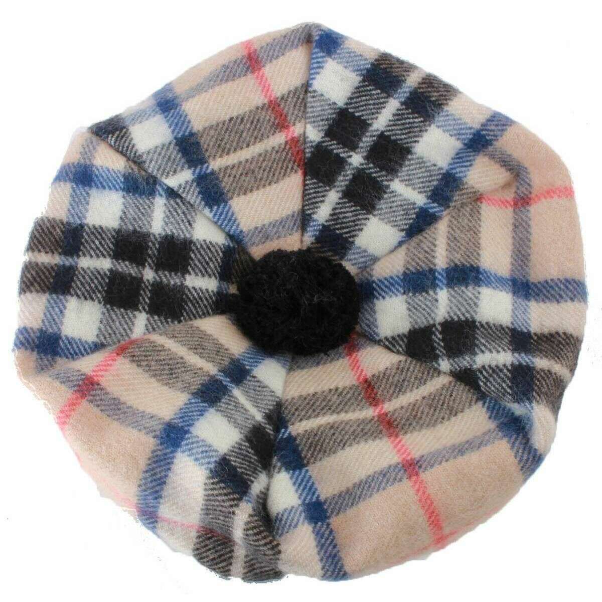 Locharron of Scotland Thomson Modern Lambswool Tam - Camel Beige/Black/Red