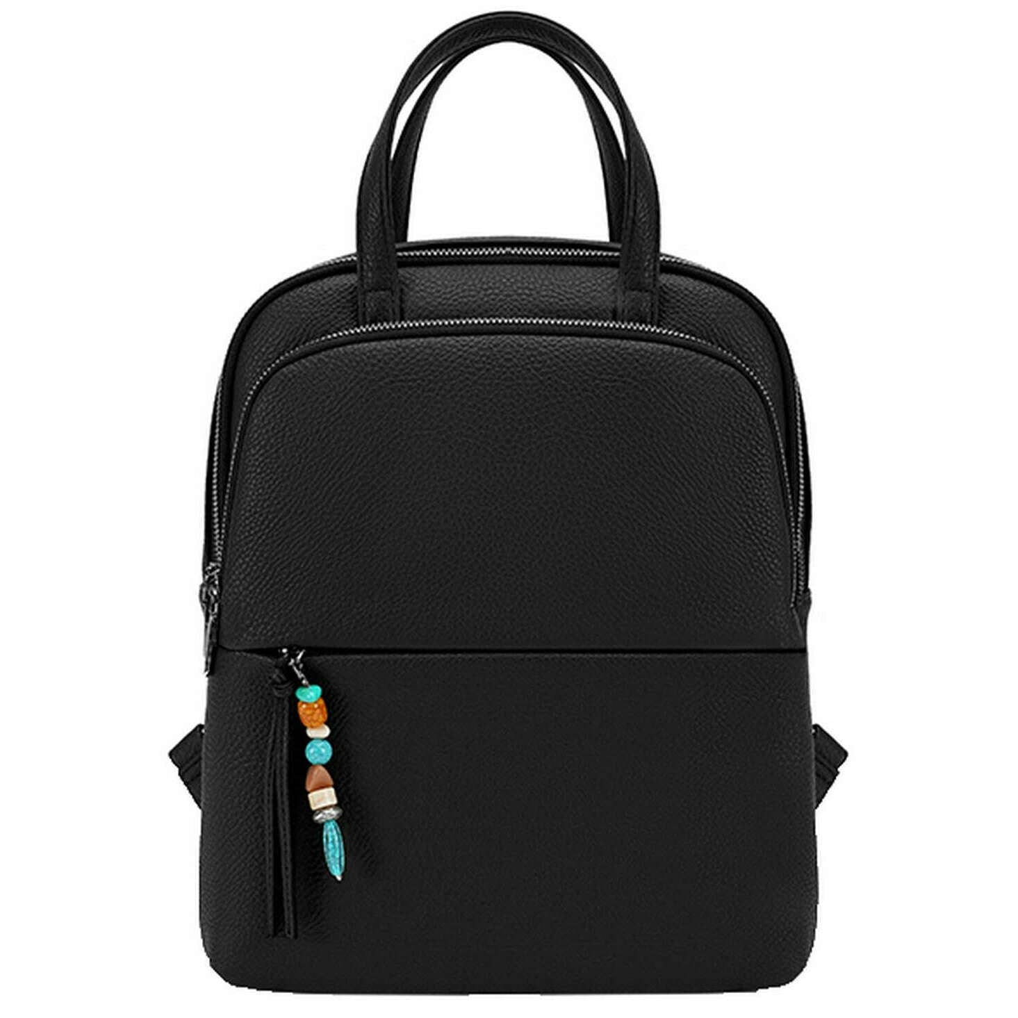 This well made women's backpack from Long and Son comes in a black colour and is manufactured from 100% polyurethane. It measures 34cm(height) x 29cm(width) x 10cm(depth). All the bags come complete with long & son packaging. The Long and Son Backpack - Black is a classic with a chic and girly twist featuring a sleek design with an added charm on the zip. Having adjustable back straps allows for a personalised fit for hands free ease and two carry handles for convenience. The exterior pockets, interior pockets and large main compartment allow for optimal storage and organisation when out and about. Great for travels, taking to work or having as an everyday bag this will become a well-used accessory.