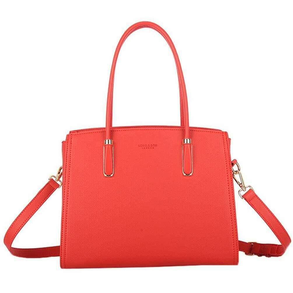 This women's crossbody shoulder bag has been made from 100% polyurethane, featured in a red colour and is from the brand Long and Son. It measures 21cm(height) x 29cm(width) x 14cm(depth). All the bags come complete with long & son packaging. The Long and Son Crossbody Shoulder Bag - Red sophisticated and girly is a must have if you are looking for a chic everyday bag to dress up any attire. Featuring two separate large compartments for organisation and two big open and one zipped pocket for more storage. The zipped top ensures a secure wear to ensure your belongings are kept safe when out and about. This bag doubles up as a shoulder bag and a crossbody bag with the simple attachment of the adjustable strap.