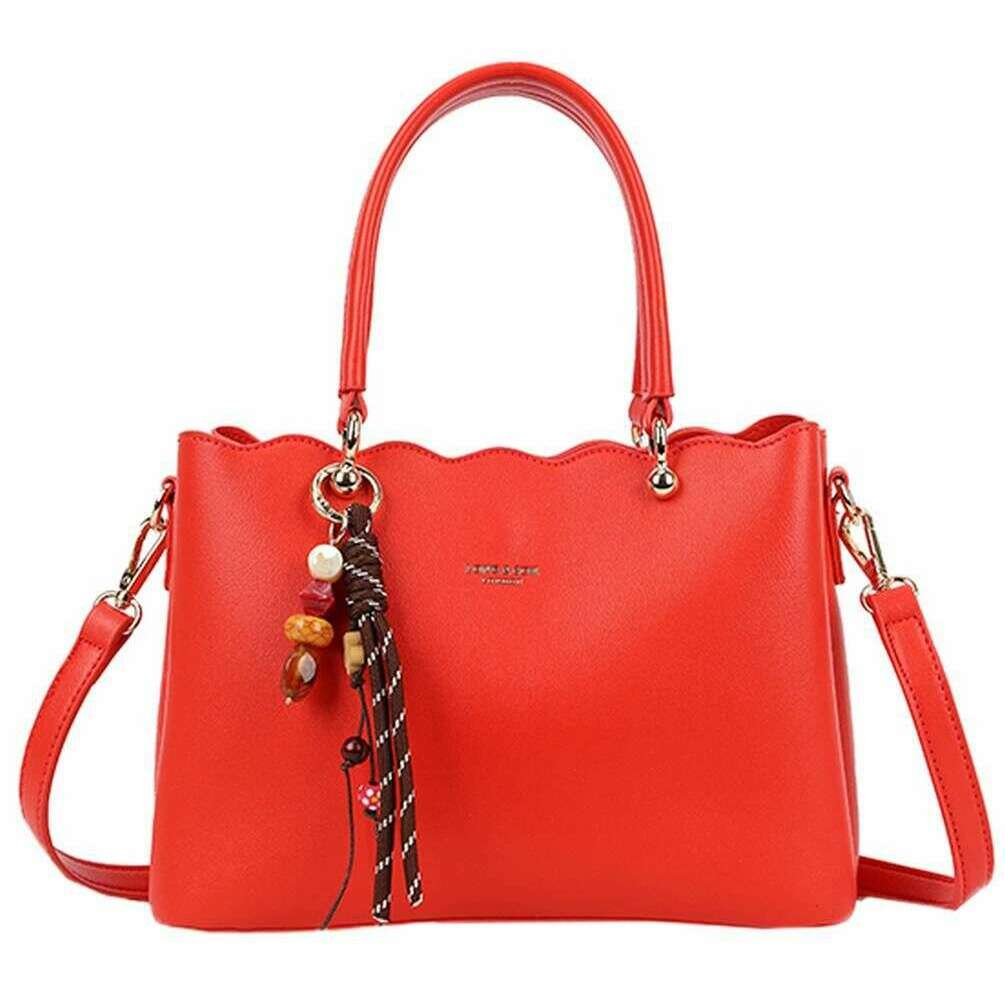 Manufactured from 100% polyurethane is this red women's scalloped edge crossbody bag by the designer Long and Son. It measures 18cm(height) x 24.5cm(width) x 11cm(depth). All the bags come complete with long & son packaging. The Long and Son Scalloped Edge Crossbody Bag - Red features a large interior with pockets, extra compartments either side of the zipper held together with magnetic closures for extra storage and feet studs for protection when placing down. This bag doubles up as cross body and a handbag with the two carry handles and detachable adjustable crossbody strap. Great for an everyday bag due to the versatility and optimal storage. Complete with the scalloped detailing for a girly touch.