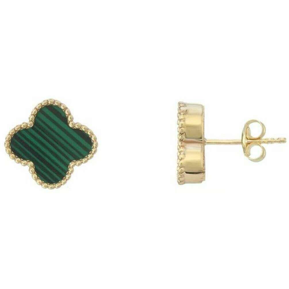 Designer Mark Milton have brought you these women's 9ct gold earrings using yellow gold/green tones. It measures 1.1cm(height) x 1.1cm(width) x 0.3cm(depth). All the earrings come complete with mark milton packaging. The Mark Milton Malachite Flower Earrings - Yellow Gold/Green are a beautiful pair of gold earrings that feature a malachite stone flower design. This pair of elegant earrings are great for gifting to those you love, or a perfect staple to have in your wardrobe.
