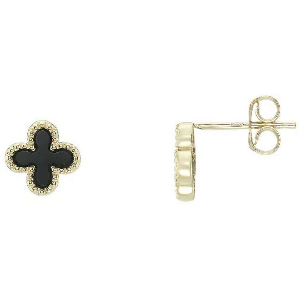 Mark Milton Onyx Flower Stud Earrings - Yellow Gold/Black