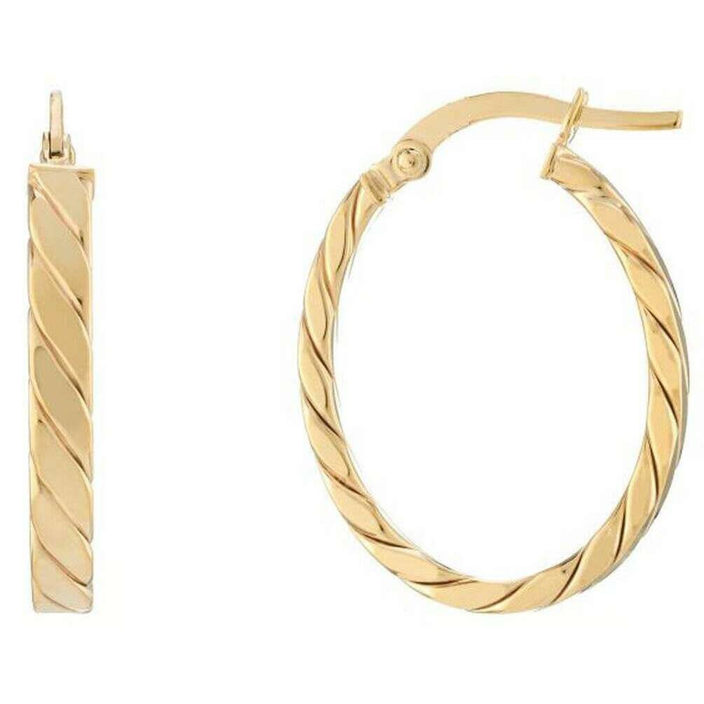 Perfect for women are these Mark Milton yellow gold oval hoop earrings, they are also made from 9ct gold. It measures 2.5cm(height) x 1.8cm(width) x 0.3cm(depth). All the earrings come complete with mark milton packaging. The Mark Milton Oval Hoop Earrings - Yellow Gold are a must-have to add to your earring rotation with its unique twist design. Perfect for matching with your style whatever the occasion. These make for the perfect gift for yourself or someone else!