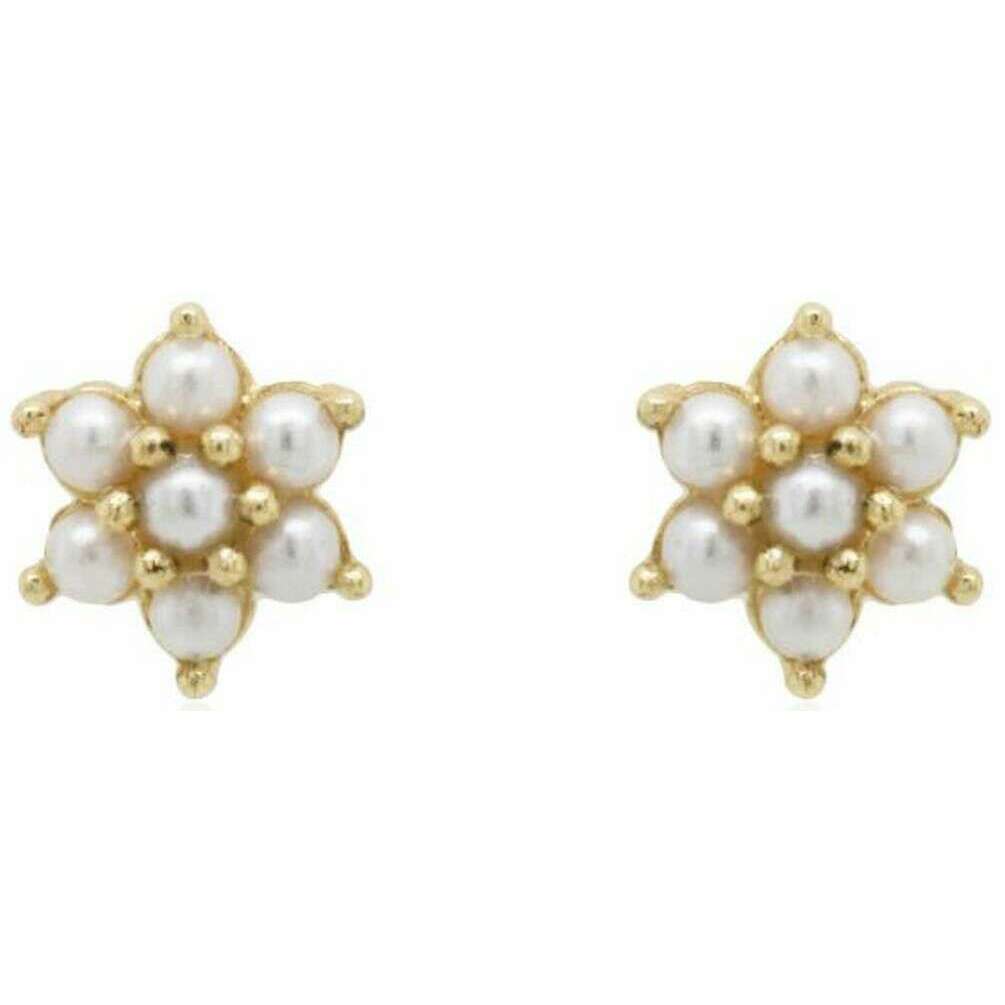 These well made women's pearl cluster stud earrings from Mark Milton come in a yellow gold colour and are manufactured from 9ct gold. It measures 0.8cm(height) x 0.8cm(width) x 0.3cm(depth). All the earrings come complete with mark milton packaging. The Mark Milton Pearl Cluster Stud Earrings - Yellow Gold are a beautiful pair of gold earrings that feature a unique pearl flower design. This pair of elegant earrings are great for gifting to those you love, or a perfect staple to have in your wardrobe.