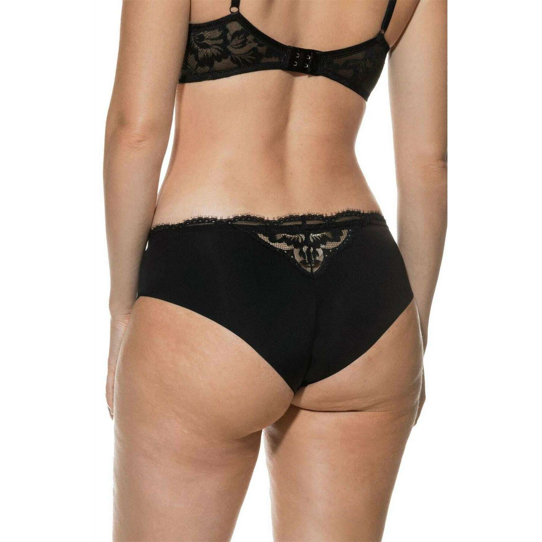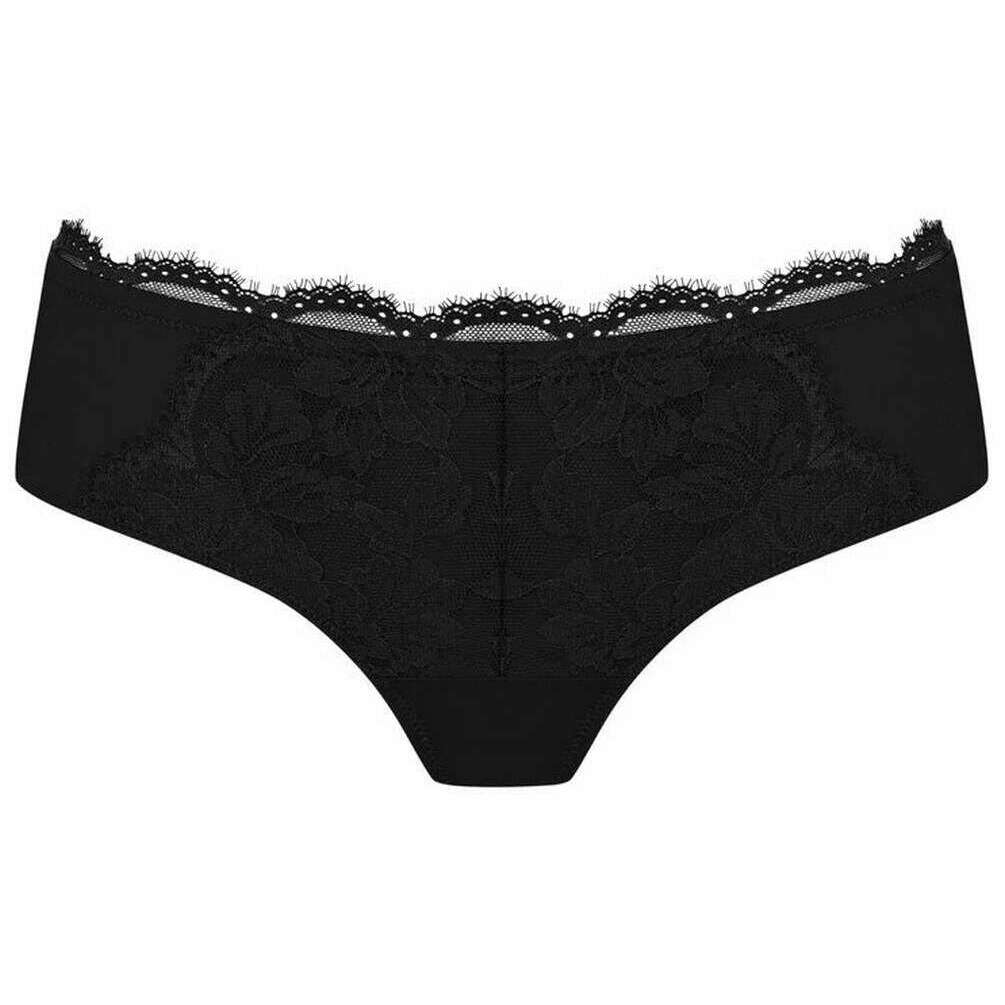 Designer Mey has brought you this women's 78% polyamide and 22% elastane underwear using black tones. Also the black underwear is designed in a plain pattern, It is recommended to machine wash at 30 degrees to keep this underwear in good condition. All the underwear comes complete with mey packaging. The Mey Amazing Hipster Briefs - Black are a must-have if you are looking for a basic with a gorgeous touch for a feminine feel. This pair has a deep mid-rise, a cotton insert on the gusset, seamless legs and a narrow waistband which all contribute to giving optimal comfort for an everyday wear. The lace front and waistband give an elegant flair.