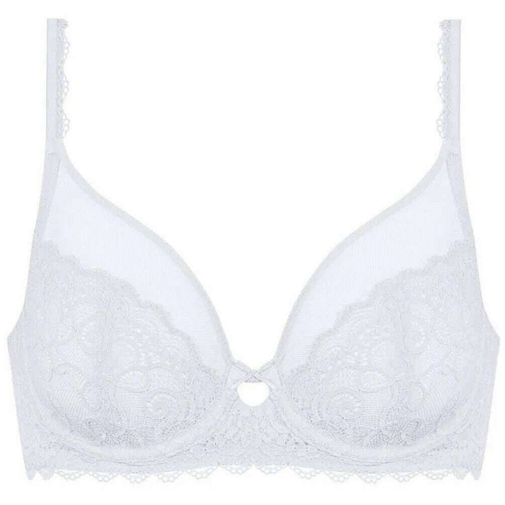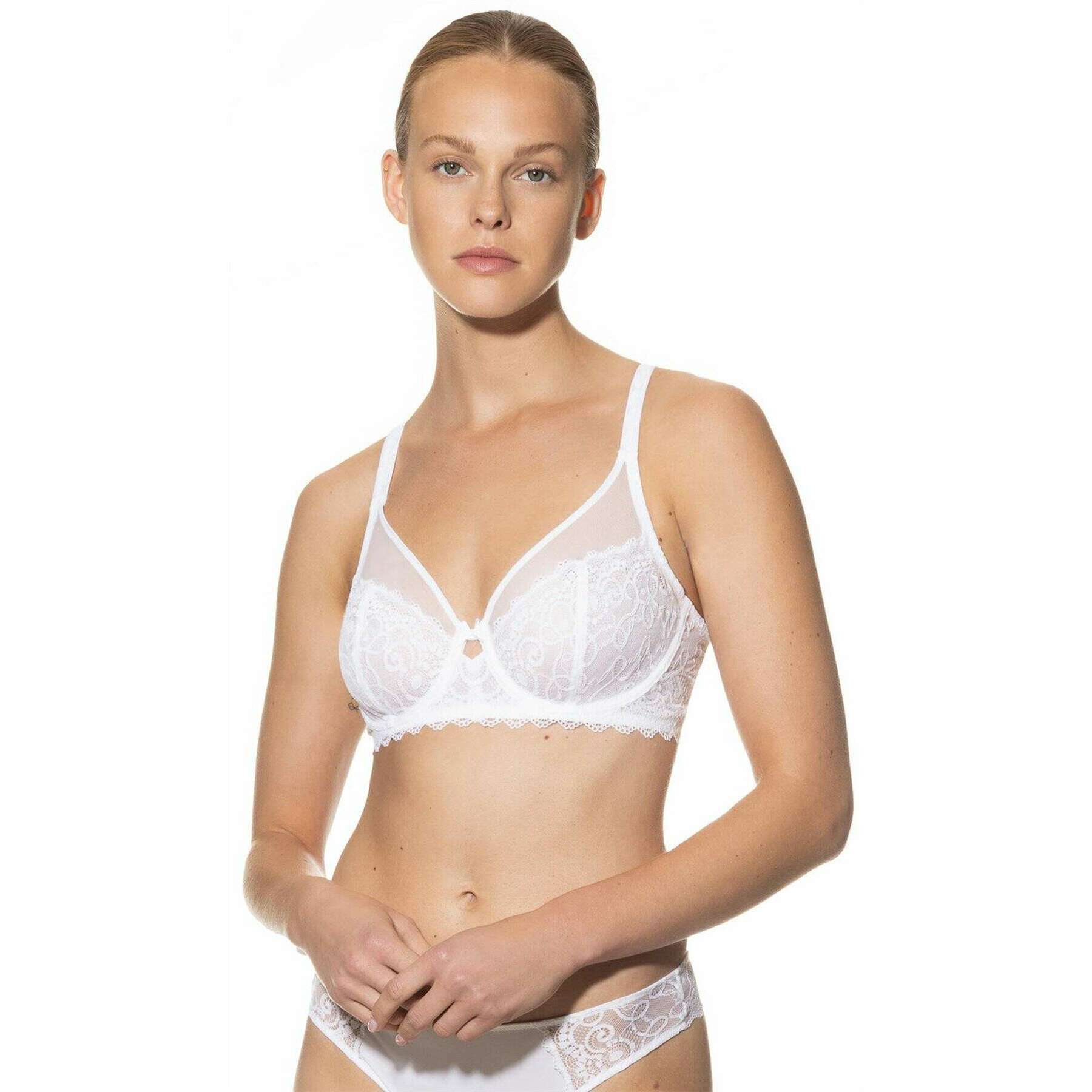 Manufactured from 76% polyamide and 24% elastane is this white women's amorous high apex wired bra by the designer Mey. Also the white underwear is designed in a plain pattern, It is recommended to hand wash to keep this underwear in good condition. All the underwear comes complete with mey packaging. The Mey Amorous High Apex Wired Bra - White has been crafted to provide comfort whilst looking sexy and feminine. The unpadded stitched cups and the adjustable straps give the perfect fit for support. The hook and eyelet fastening with three different adjustable options gives you space to move and grow. This design has been made to distribute the weight to the under bust instead of your shoulders for extra comfort when out and about. The graphic lace and decorative bow complete this look.