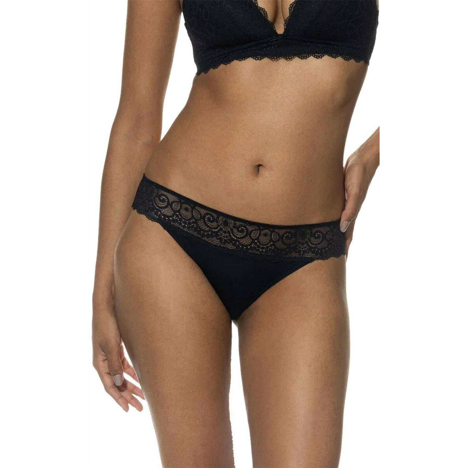 This women's amorous mini brief has been made from 87% polyamid and 13% elasthan, featured in a black colour and is from the brand Mey. Also the black underwear is designed in a plain pattern, It is recommended to gentle wash on 30 degrees, do not iron on a really hot setting, do not tumble dry, do not bleach to keep this underwear in good condition. All the underwear comes complete in mey packaging. The Mey Amorous Mini Brief - Black Feature a deep mid rise fit with soft leg openings and a flat waistband designed to allow for optimal comfort throughout their wear. They have been decorated with delicate lace to give them an elegant and feminine touch, perfect to ensure sexy confidence. Add these to your collection and you will be reaching for them every morning.