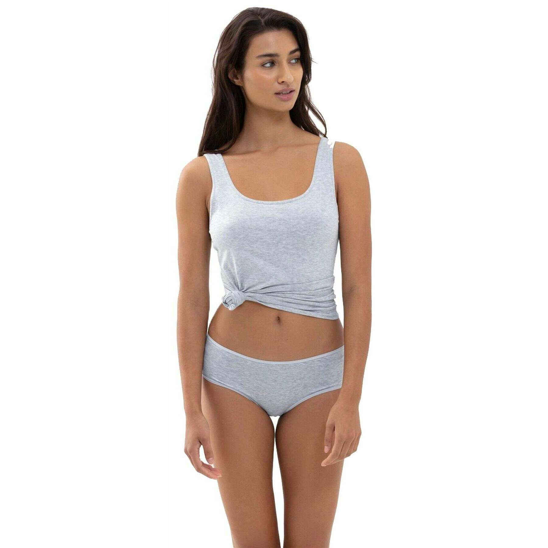 Designer Mey has brought you this women's 94% cotton and 6% elastane vest using light grey melange tones. Also the light grey melange vest is designed in a plain pattern, It is recommended to machine wash at 60 degrees to keep this vest in good condition. All the vests come complete with mey packaging. The Mey Cotton Pure Vest Top - Light Grey Melange is the new basic underwear line designed for women who value simplicity, quality, and a perfect fit. This top with wide straps showcases a clean, minimalist design that exudes sporty elegance, making it a versatile essential for everyday wear. Crafted for an incredible fit, it offers the best feel?good experience, gently adapting to your shape while providing reliable comfort and support. Made from breathable materials, it creates a pleasant climate for the skin, ensuring it feels fantastic to wear throughout the day. Timeless, comfortable, and beautifully simple this is your new go?to basic for effortless everyday style.