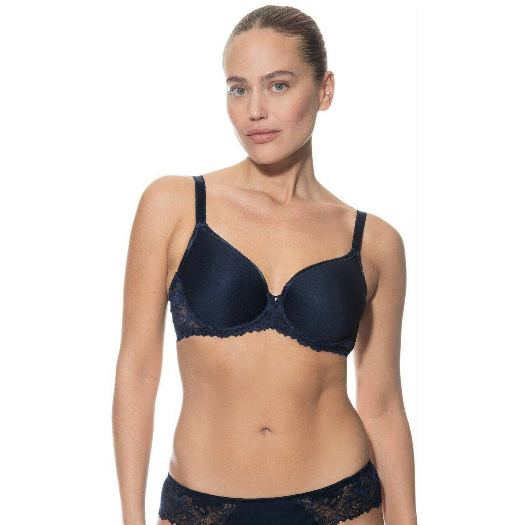 This luxurious spacer bra for women is fashioned by the brand Mey in a blue colour and is made from 60% polyamide, 31% polyester and 9% elastane. Also the night blue underwear is designed in a plain pattern, It is recommended to hand wash to keep this underwear in good condition. All the underwear comes complete with mey packaging. The Mey Luxurious Spacer Bra - Night Blue made with soft, breathable yarns, it s super lightweight and comfy for all-day wear. The cups gently shape to your body, and the adjustable straps make it easy to find your perfect fit whilst giving support. With the hook-and-eye closure offering three size options, you ve got room to move and grow. Finished off with pretty lace details adds a sweet, feminine touch you ll love.