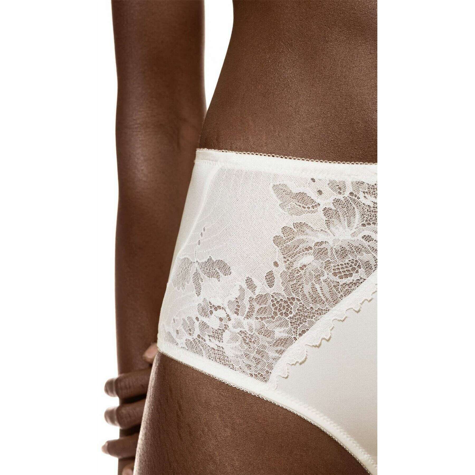 • OEKO-TEX Standard 100 , High-Waist Fit , Lace Sides , Flat Waistband , Soft Leg Openings , Cotton Insert on Gusset , Two-Tone Lace , Gentle Support