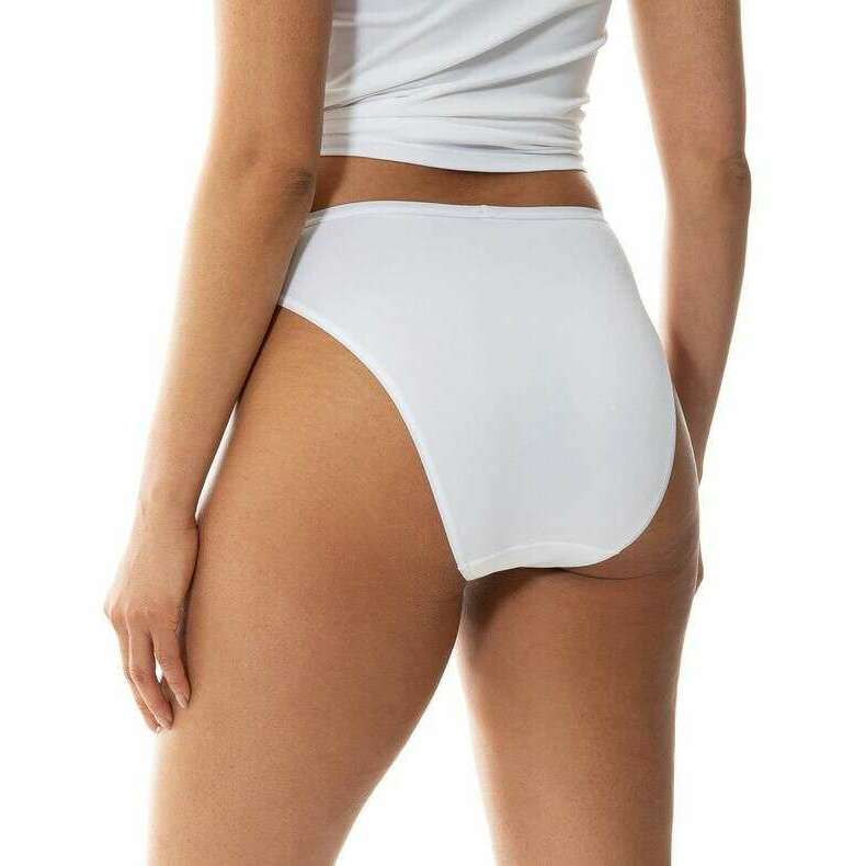 Designer Mey has brought you this women's 50% viscose, 46% polyamide and 4% elastane underwear using white tones. Also the white underwear is designed in a plain pattern, It is recommended to machine wash at 60 degrees to keep this underwear in good condition. 2 pack underwear is value for money ensuring they are a good buy, All the underwear comes complete with mey packaging. The Mey Pure Sense Retro Jazz Twin Pack Brief - White will become staple in your wardrobe with its impressive smooth and high-quality material that will ensure upmost comfort all day long. Featuring a high waisted fit, a flat waistband that prevents pinching, soft leg openings, a cotton insert on the gusset and polyester fibres that have a cooling effect on the skin. This classic and sleek design create an absolute must-have in any woman’s collection. These underwear are Oeko-Tex-Standard 100 certified.