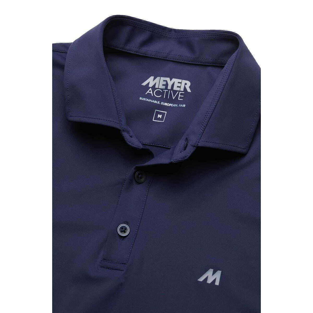 This men's bryson performance long sleeve polo has been made from 90% polyamide (recycled) and 10% elastane, featured in a navy colour and is from the brand Meyer. Also the navy polo shirt is designed in a plain pattern, It is recommended to wash at 40 degrees to keep this polo shirt in good condition. All the polo shirts come complete with meyer tags. The Meyer Bryson Performance Long Sleeve Polo - Navy is the perfect active polo for the cooler months as the long sleeves will keep you well protected. The functional fabric used is recycled and is breathable, quick-drying, sun cream resistant, UV protected and retains it shape, ideal for the active gent. It has the ‘perfect fit’ with a slim silhouette and a 3-button polo collar, keeping you looking dapper on or off the court.