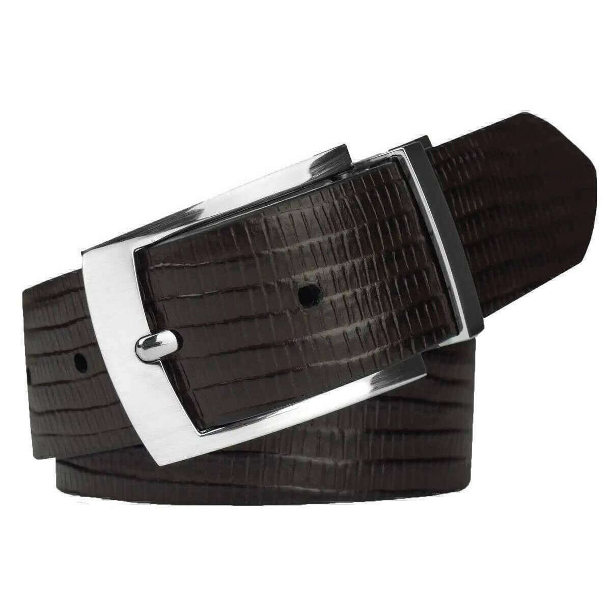 Brought to you by the brand Meyer, this brown/black men's reversible belt is made from 100% genuine leather. All the belts come complete with meyer tags. The Meyer Reversible Belt - Brown/Black has the best of both worlds as one side is plain black and the other is dark brown with a crocodile effect in the leather; ideal for formal or casual wear, the choice is yours. It can be reversed using the special mechanism on the buckle. Handmade in Europe makes this stunning belt the optimum of luxury and sustainability, ideal for any gents accessory collection.