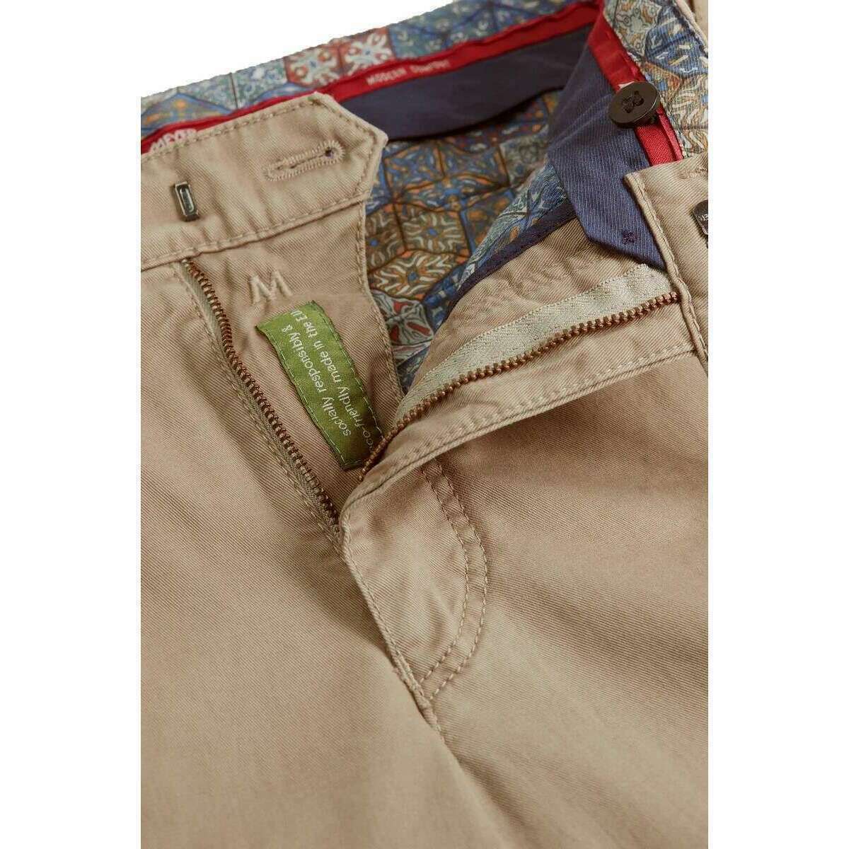 These men's roma regular chinos have been made from 98% organic cotton and 2% elastane, featured in a beige colour and are from the brand Meyer. Also the beige trousers are designed in a plain pattern, All the trousers come complete with meyer tags. The Meyer Roma Regular Chinos - Beige promise a slender silhouette without compromising on a comfortable fit as they have been expertly crafted from organic cotton, beautifully soft on the skin whilst remaining environmentally responsible. The flat-front style has a regular fit with an elasticated waistband, waistband hook with securing button, zip safety, rounded French pockets with additional coin pocket and buttoned back pockets so you can be sure there are plenty of ways to carry your necessities. The perfect pair of chinos for everyday wear, they also feature non-fade, colourfast and a high quality interior design with colourful woven pocket patches.