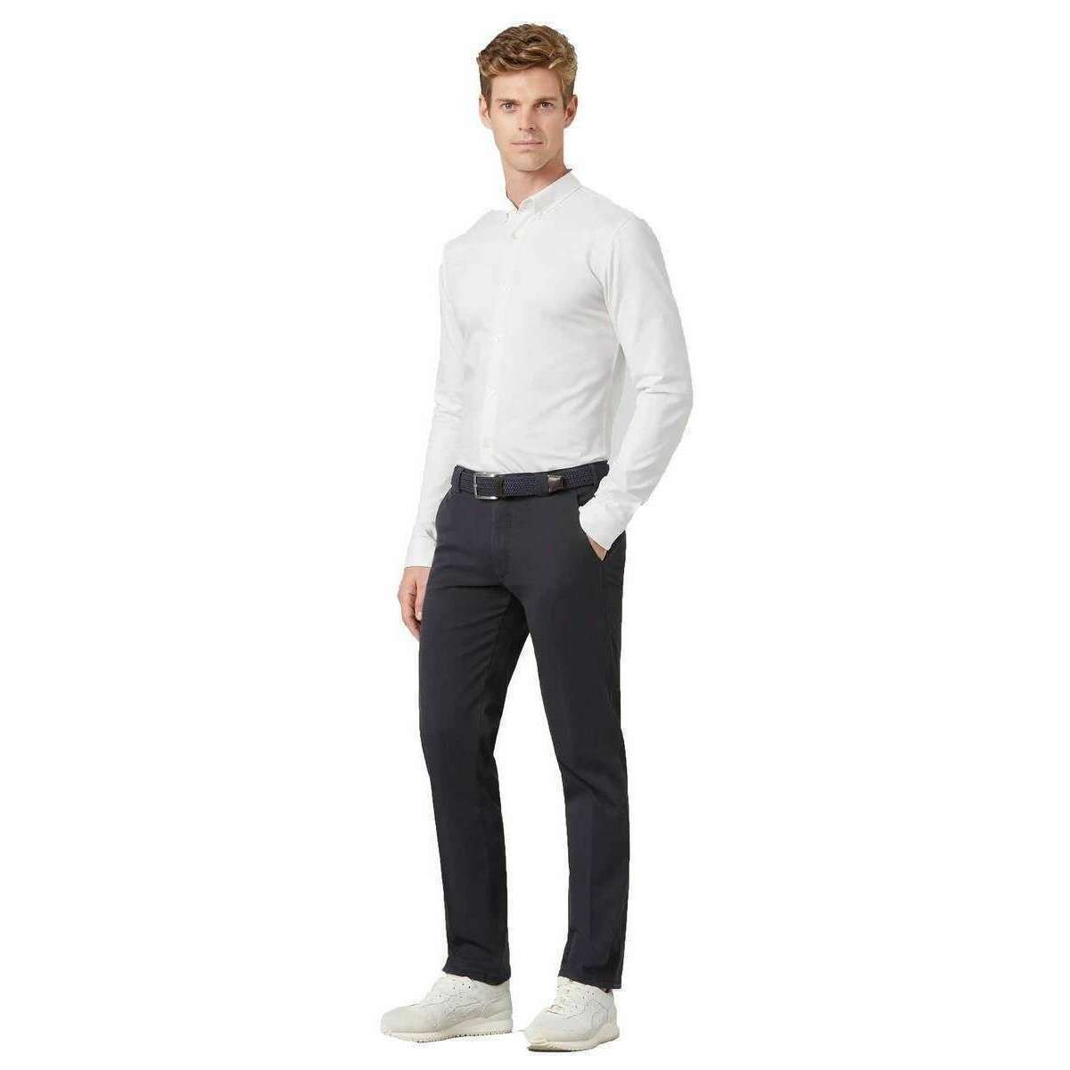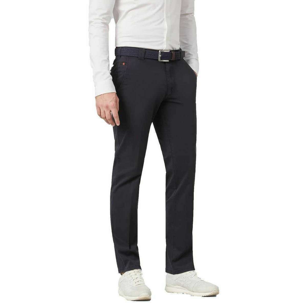 These well made men's roma regular fair chinos from Meyer come in a navy colour and are manufactured from 97% fair trade cotton and 3% elastane. Also the navy trousers are designed in a plain pattern, All the trousers come complete with meyer tags. The Meyer Roma Regular Fair Chinos - Navy consist exclusively of Fairtrade-certified cotton making them the perfect, responsible pair of chinos. The comfortable fit, special contoured waistband, and two-way stretch fabric ensures incomparable comfort, ideal for everyday wear. Featuring rounded French pockets, additional coin pocket, zip safety and buttoned back pockets, they are practical as well as stylish. Lightfast and colourfast, these chinos have maximum protection from fading and with an elegant interior finish and sophisticated details, these trousers will enhance any outfit.